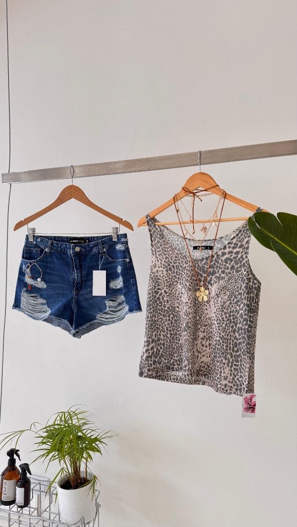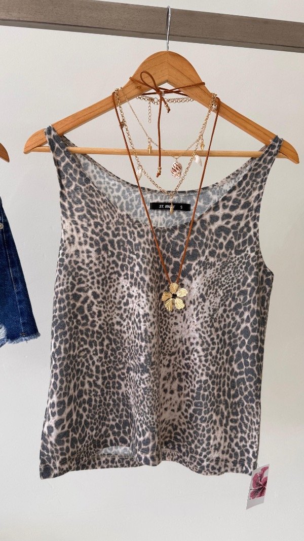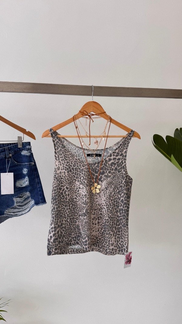 Musculosa de lino estampado full print, su escote es cavado y tiene un largo hasta la cintura.