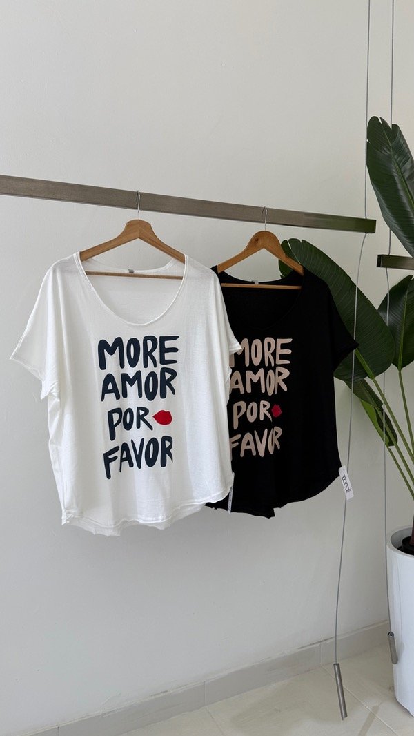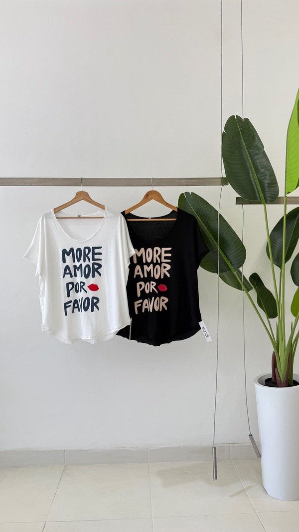 Remera básica de algodón con estampado delantera. Talle único, abarca de un S al L