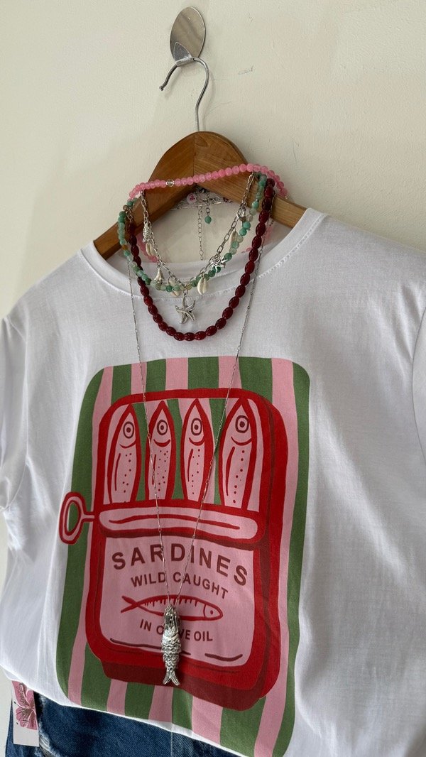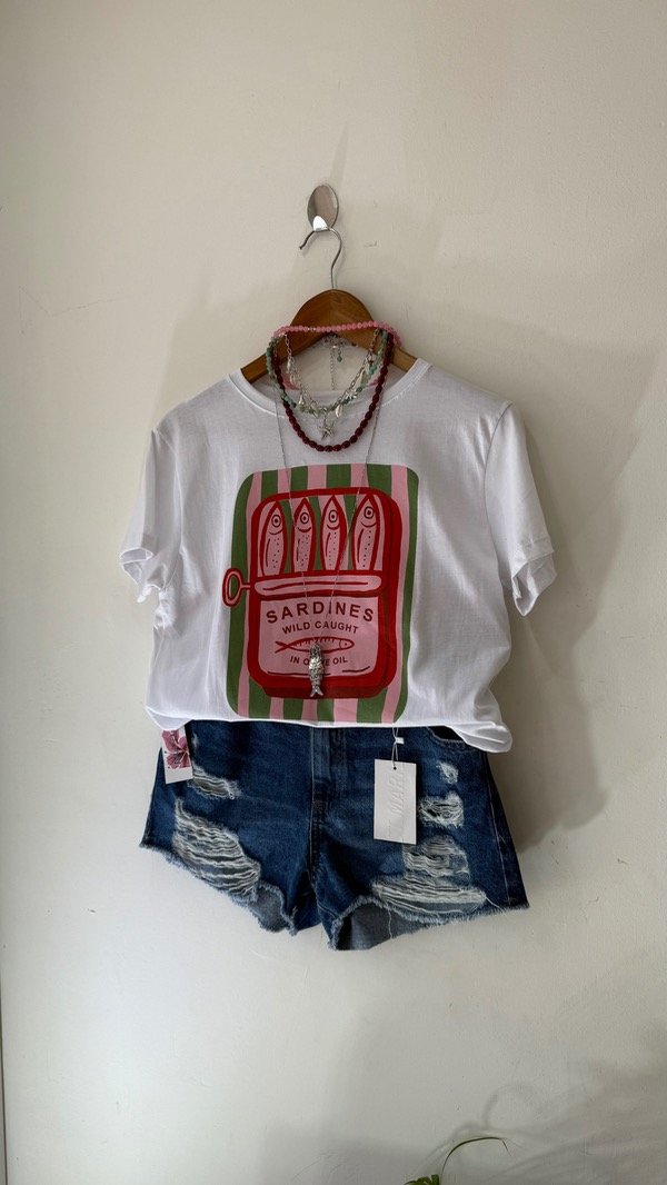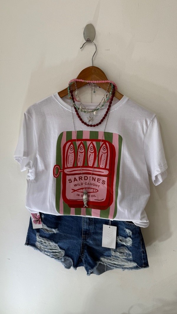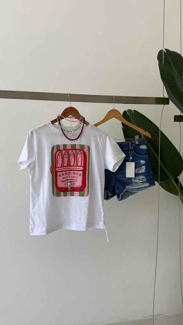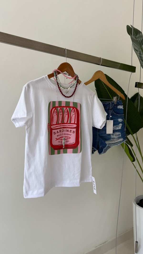 Remera básica de algodón con estampa delantera. Talle único, abarca de un S al L