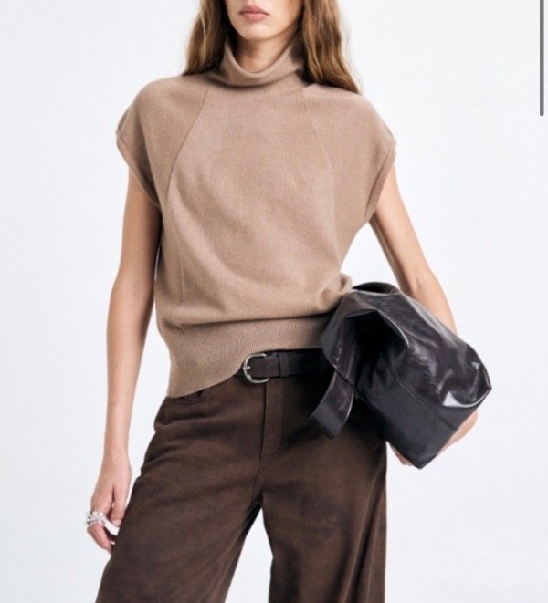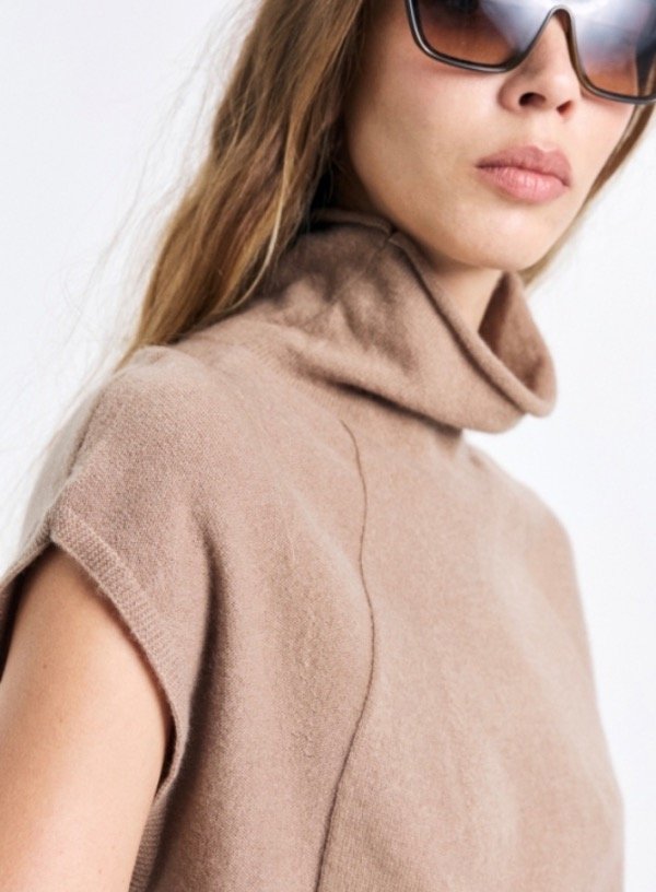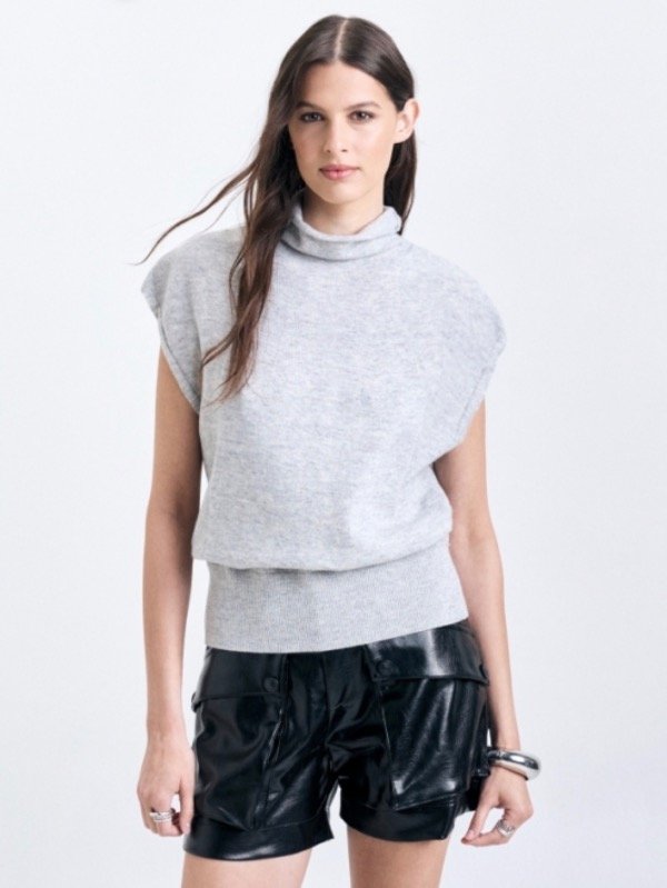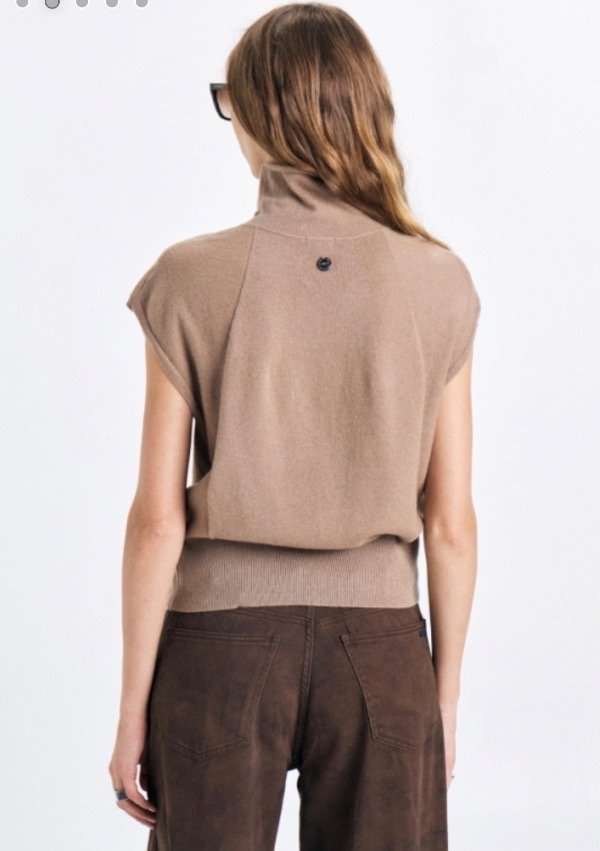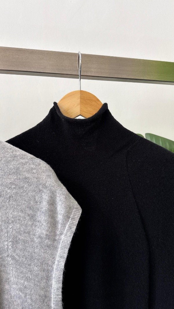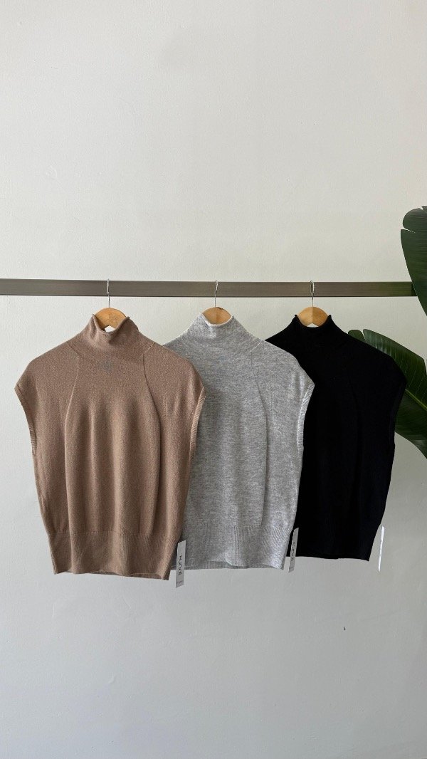 Chaleco con cuello polera y detalle en tejido de manga ranglan.