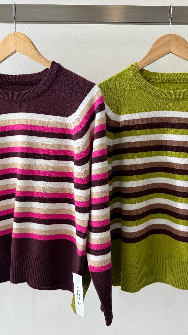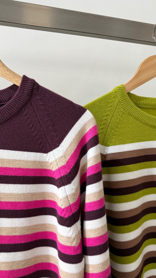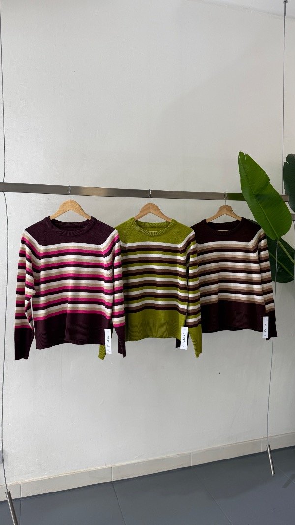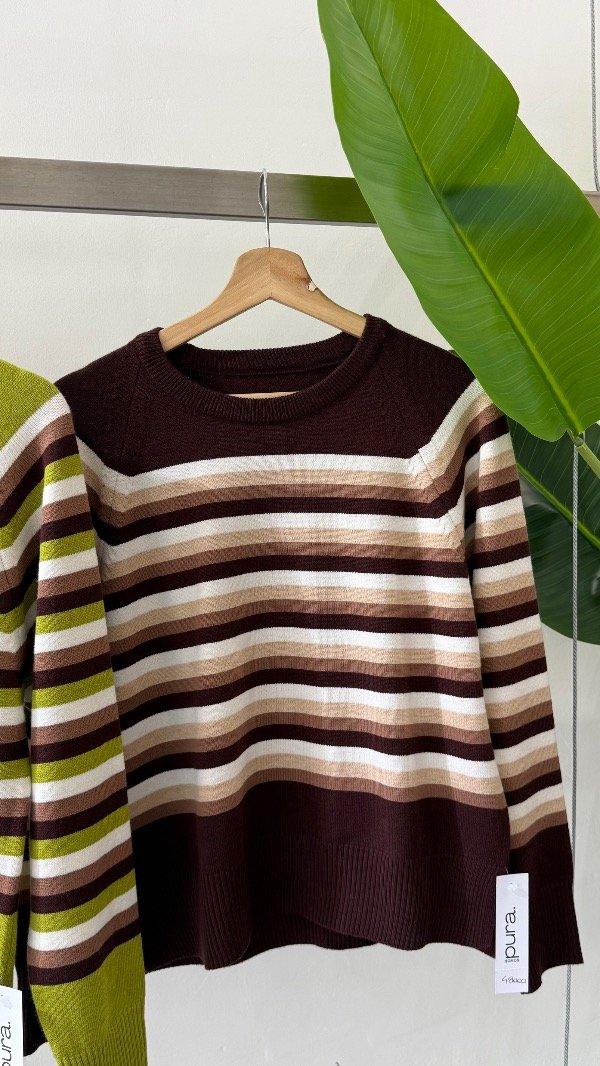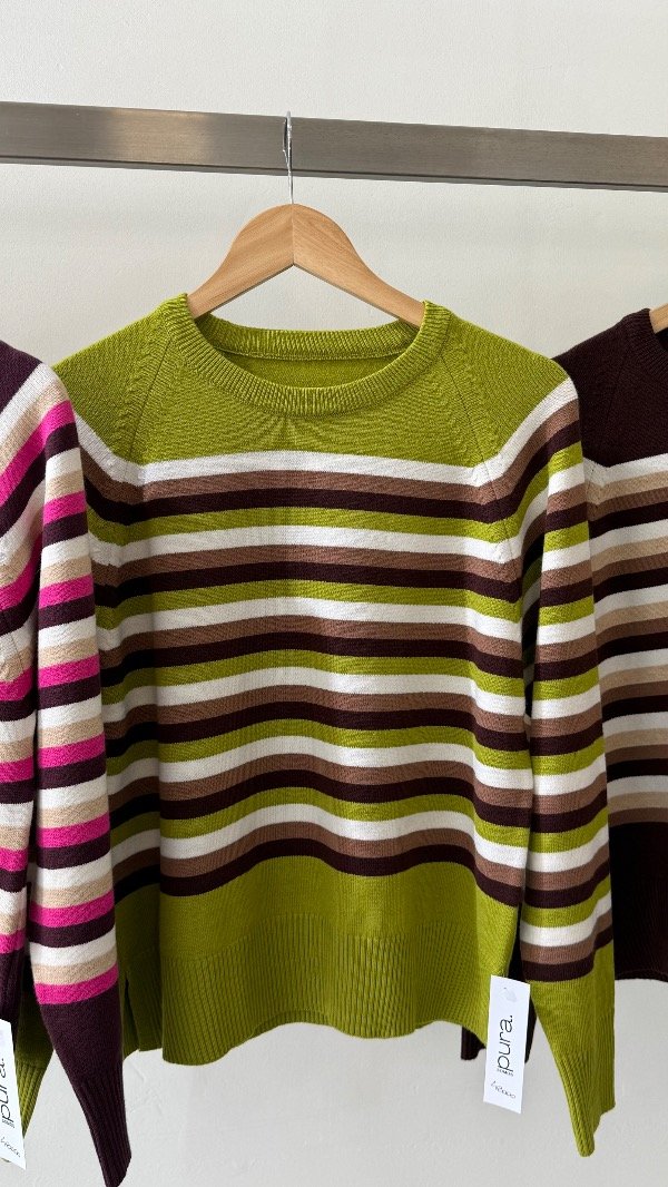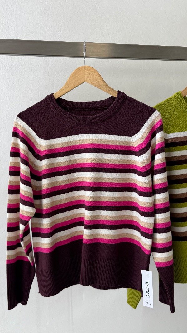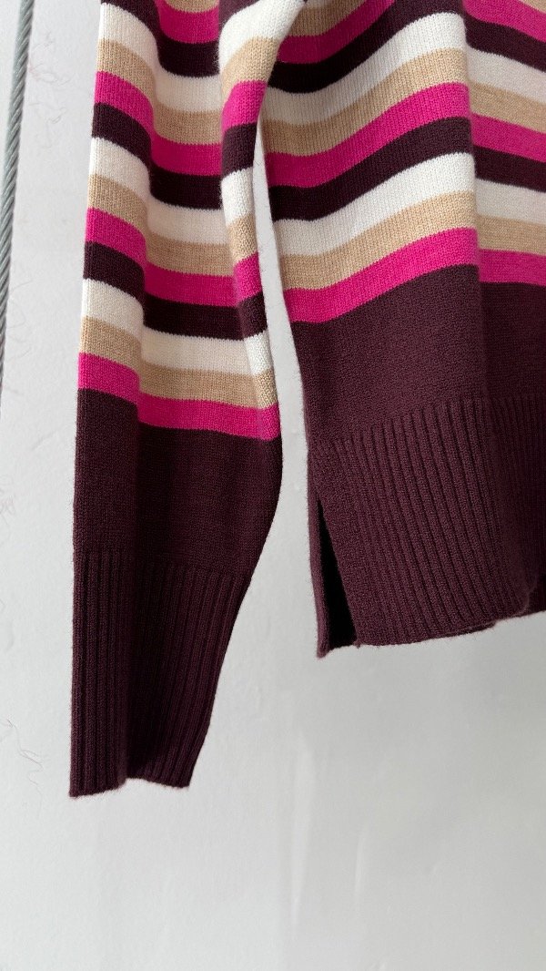 Sweater de doble bremer rayado con detalles. Talle único, abarca de un S al L