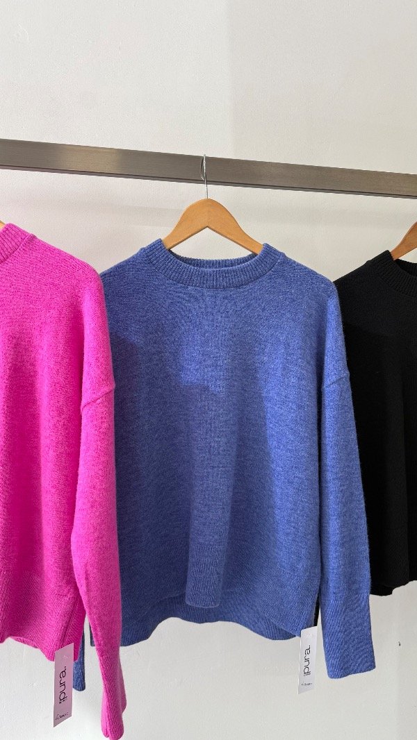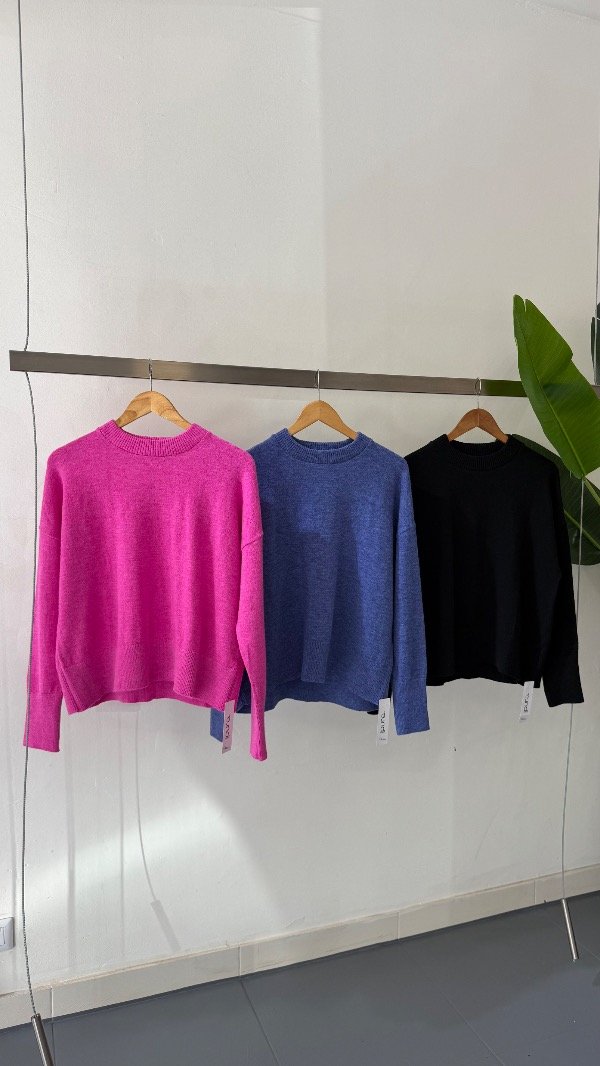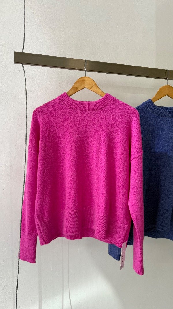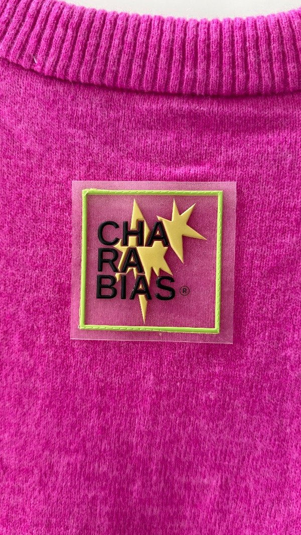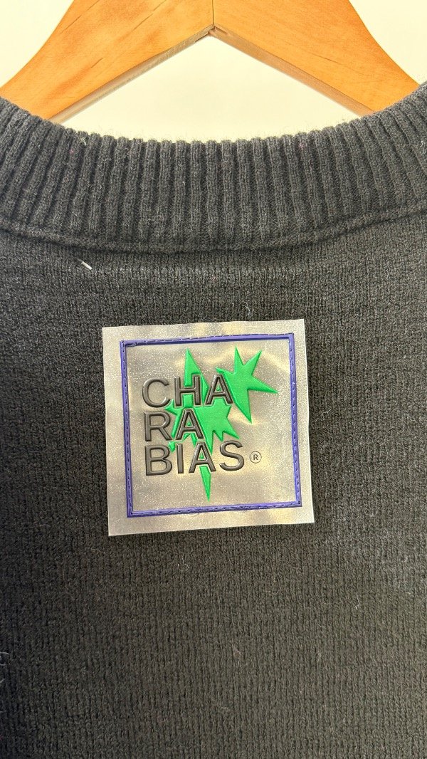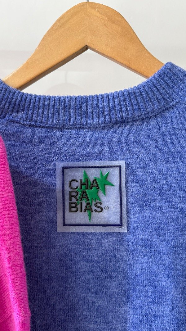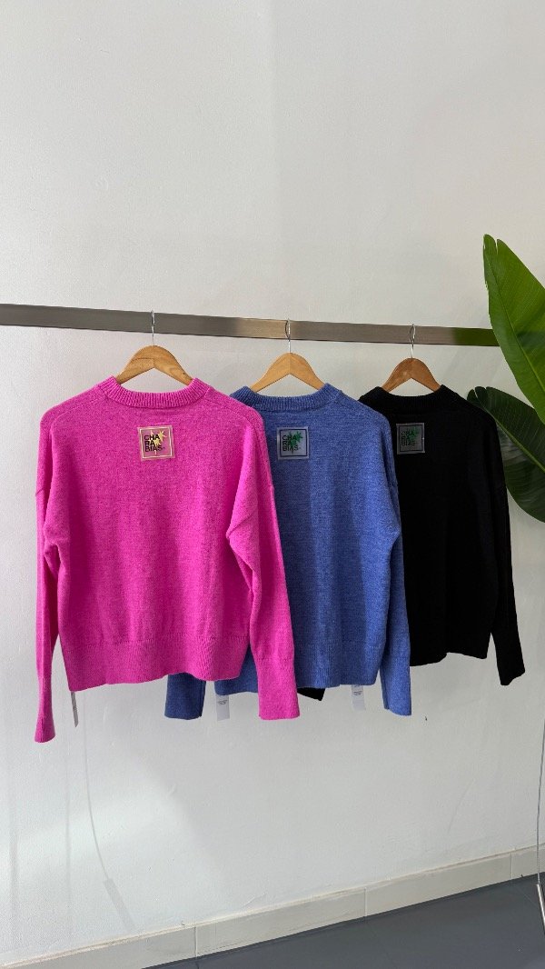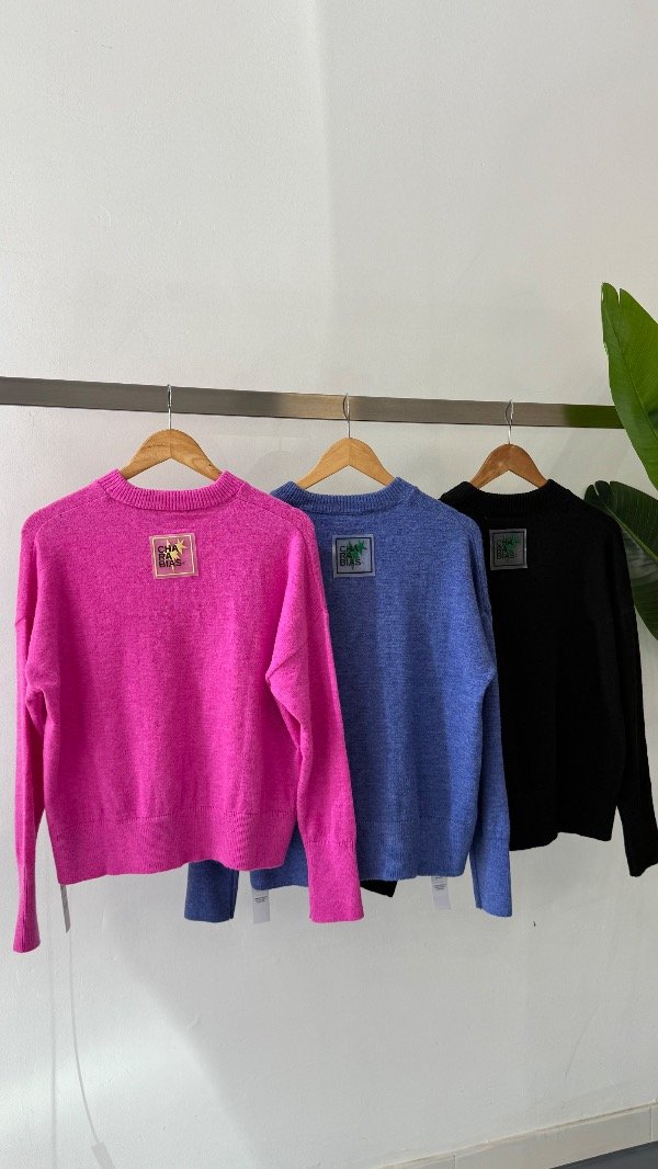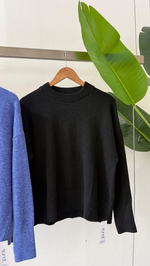 Sweater de Mohair con detalle de etiqueta en espalda. Talle único, abarca de un S al L
