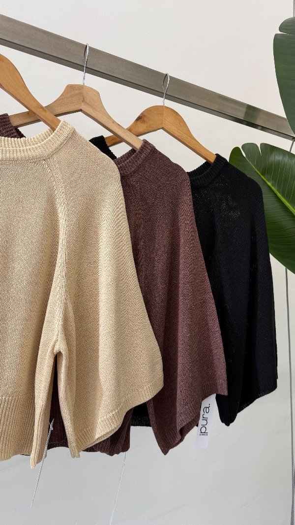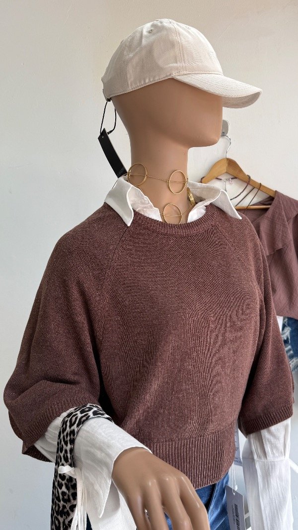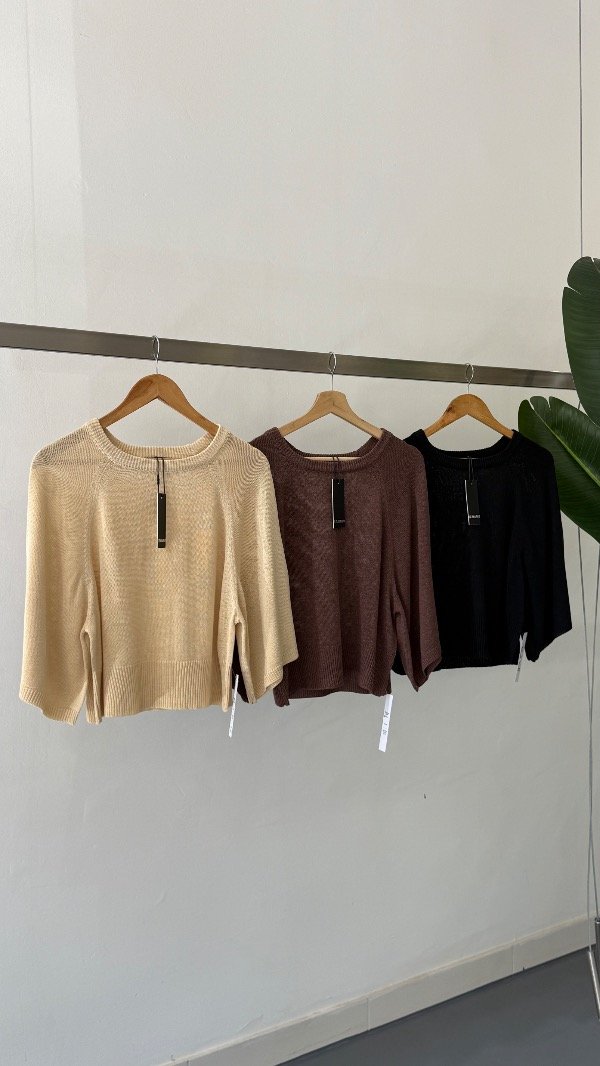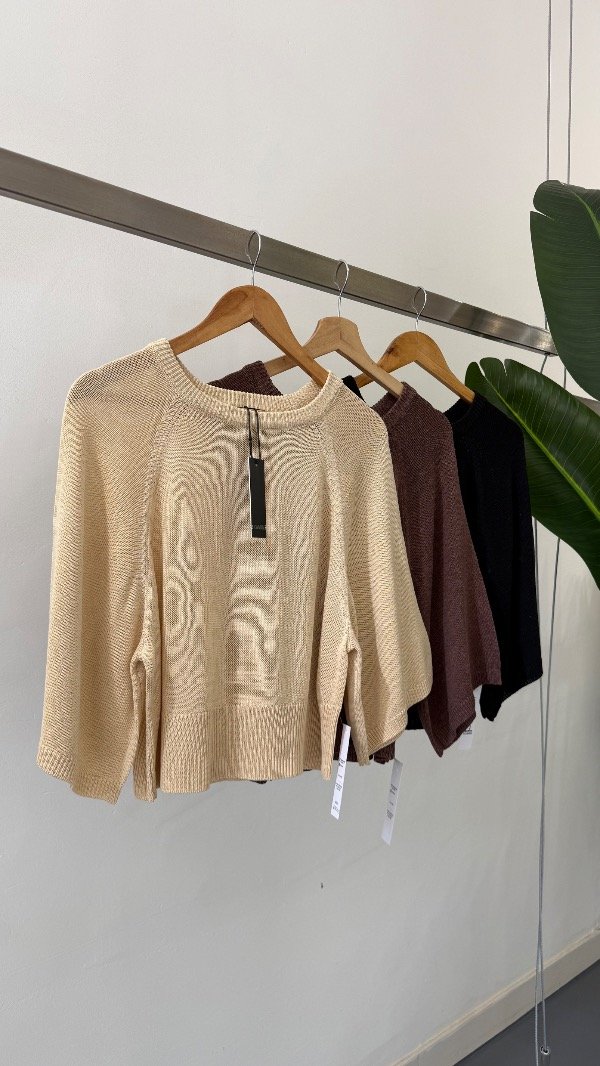 Sweater tejido de calce holgado con manga ranglan 3/4 y escote redondo.