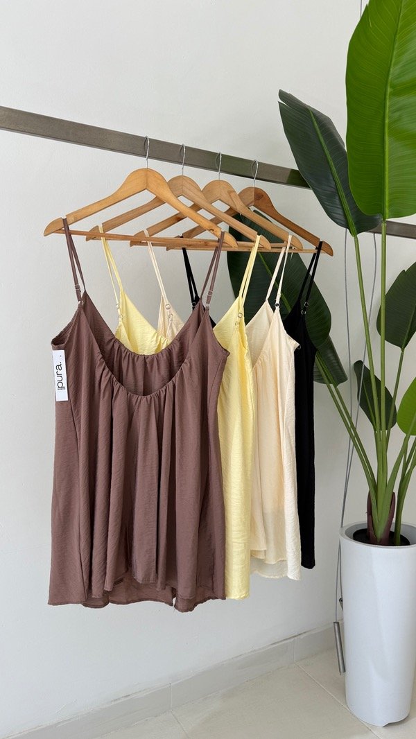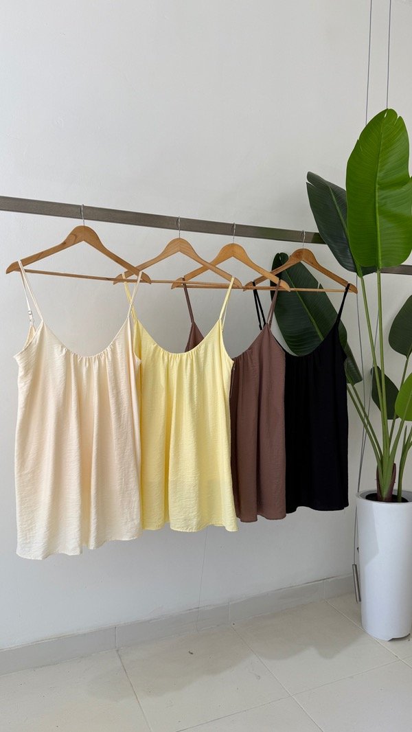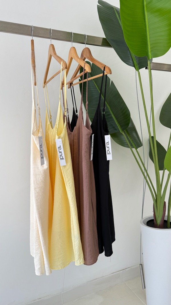 Vestido de crep crush con bretel regulable y espalda baja, doble tela. Talle único, abarca de un S al L