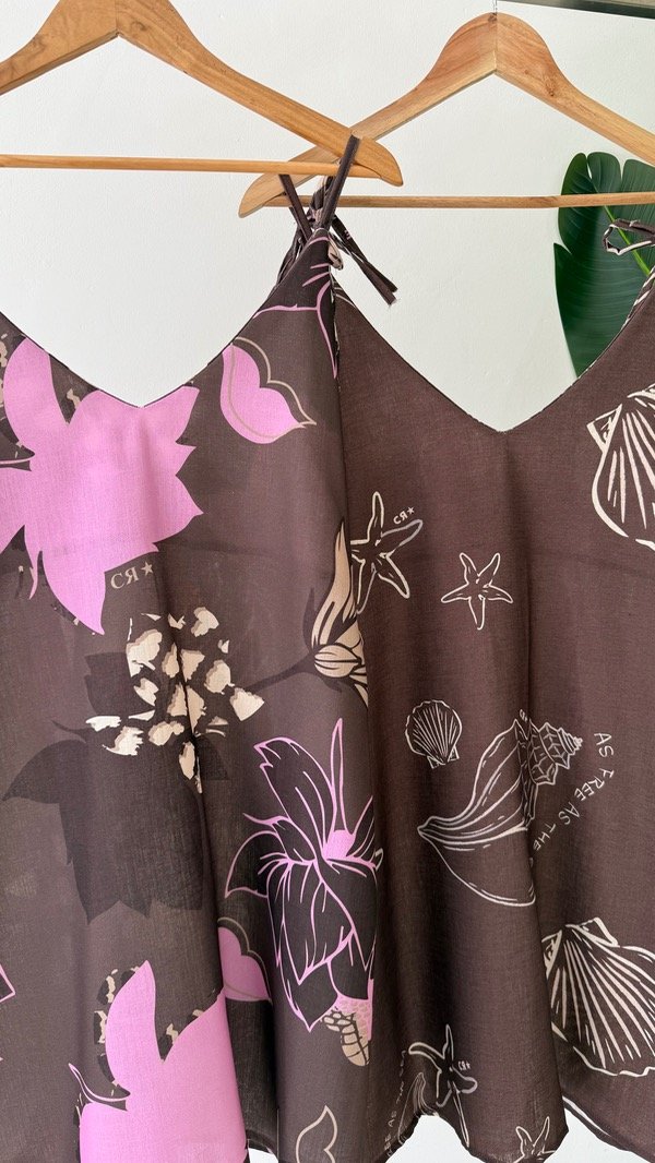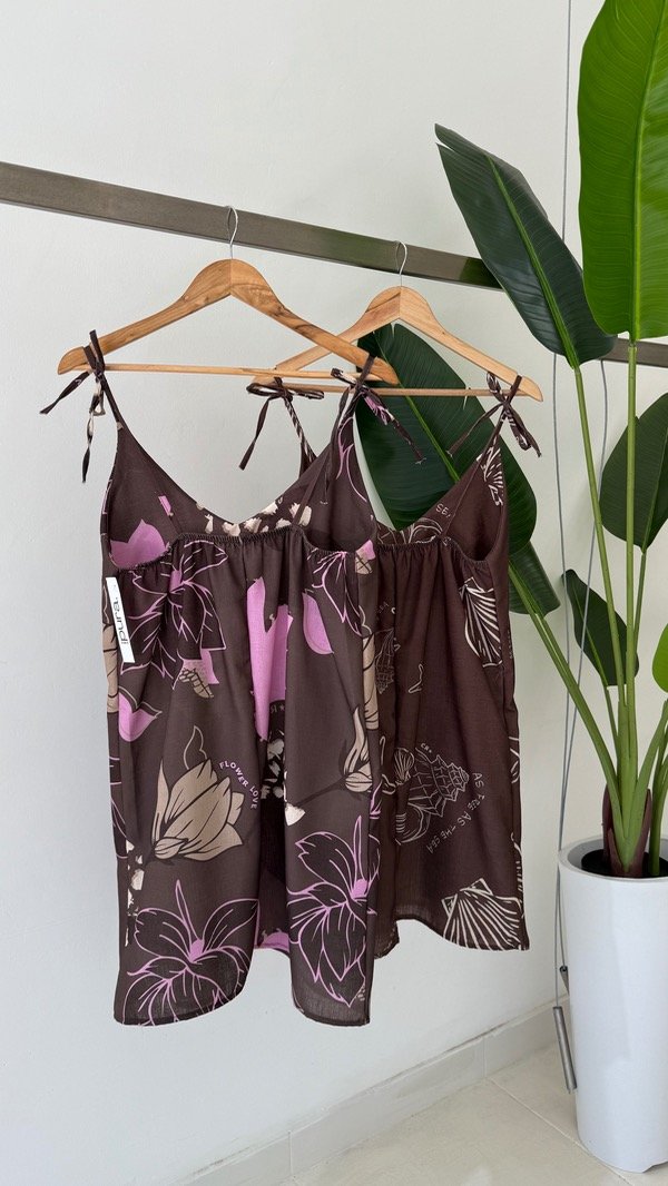 Vestido de lino estampado, viene con bolsillos. Talle único, abarca de un S al L