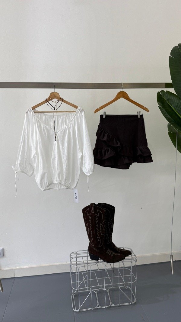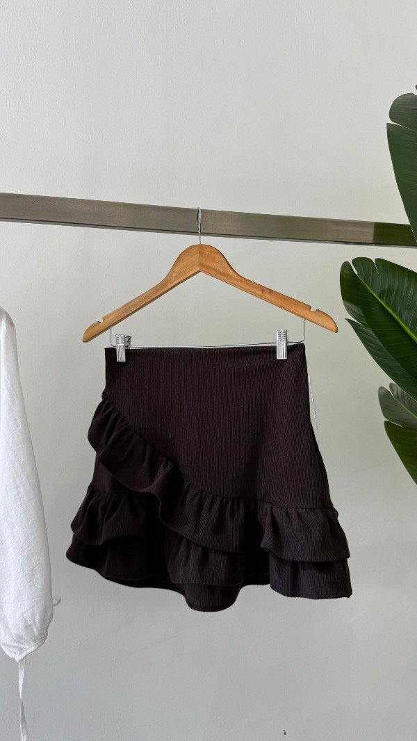 mini falda de corderoy con volados y elástico en media cintura. Talle único