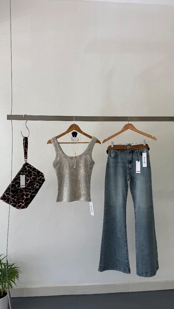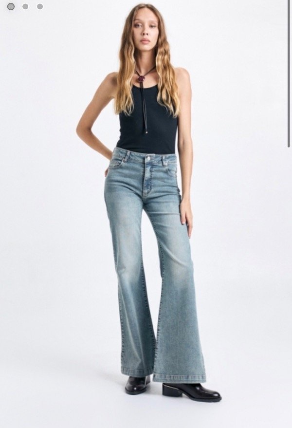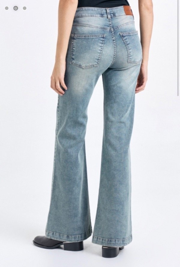 Jean oxford tiro medio, de cinco bolsillos elastizado. En la cintura trasera cuenta con una badana con identificación de marca.