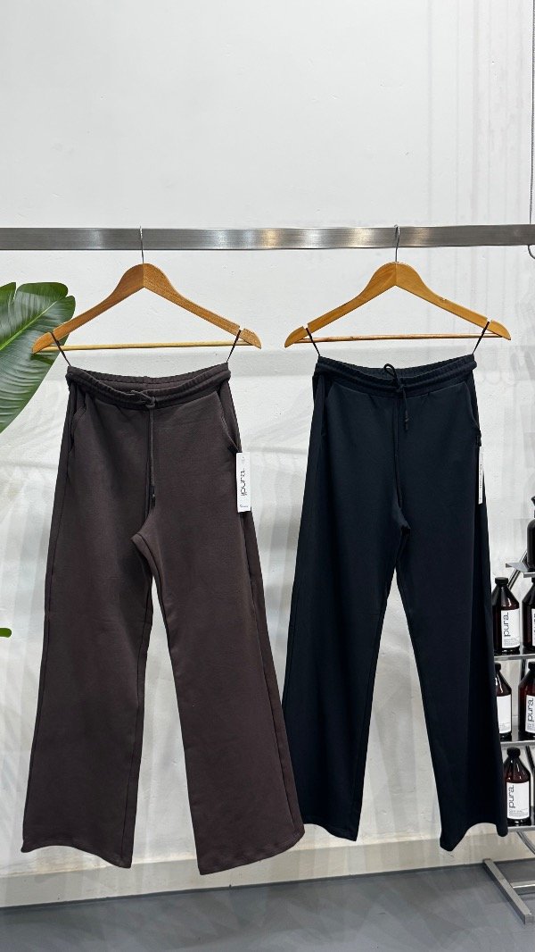 Pantalón de rústico con lycra, de calce recto, con cintura elastizada y tiras de cordón plano con punteras. Lleva bolsillos internos en la delantera; en la boca del bolsillo izquierdo lleva plastisol marcario.