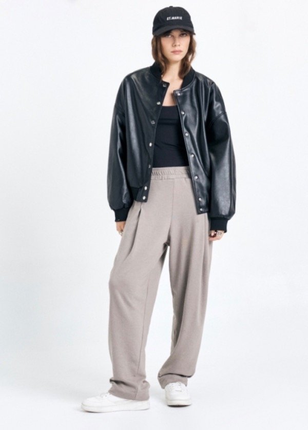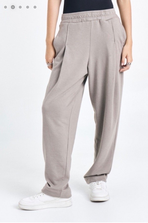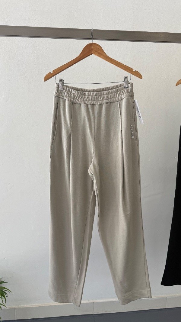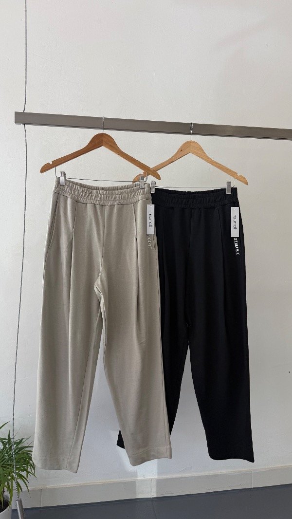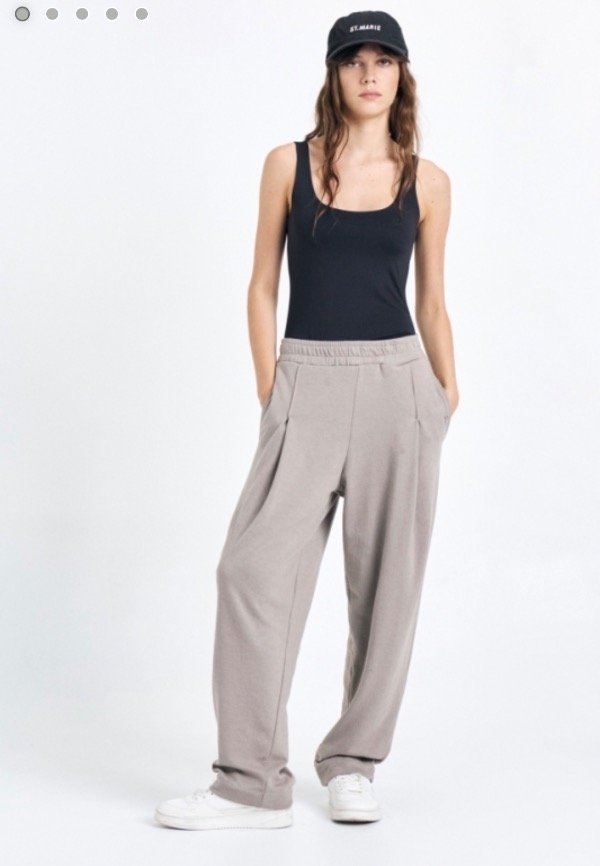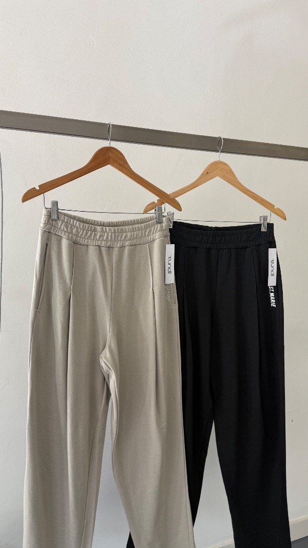 Pantalón de rústico liviano con tablas en delantero, cintura elastizada y logo "St Marie" en bolsillo.
