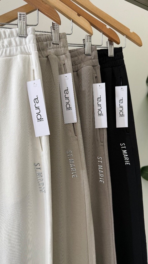 Pantalón de rústico, con bolsillos y elástico en cintura, y logo de St. Marie en bolsillo.