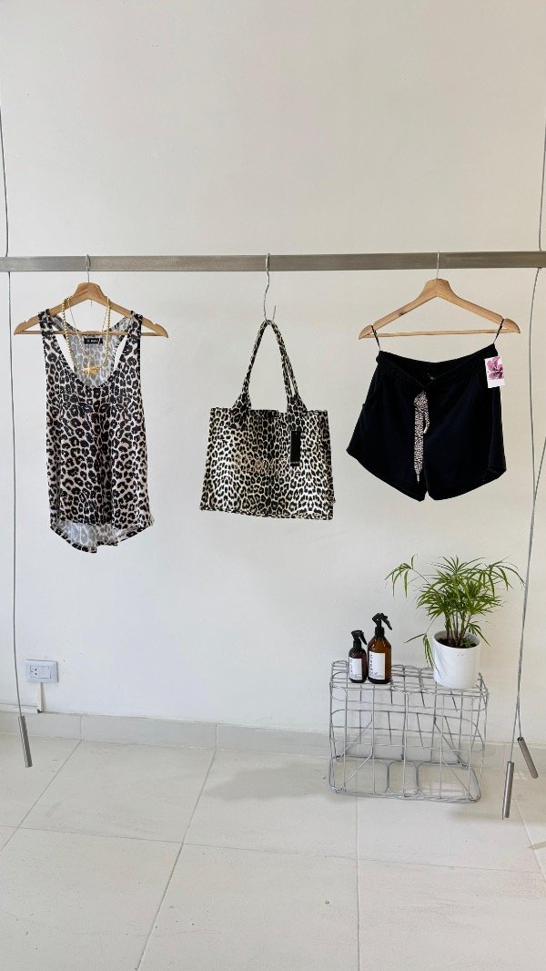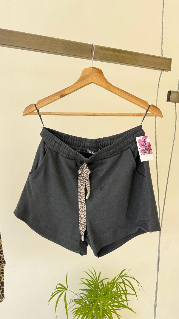 Short rústico con lycra, detalle de cintas estampadas en leopardo.