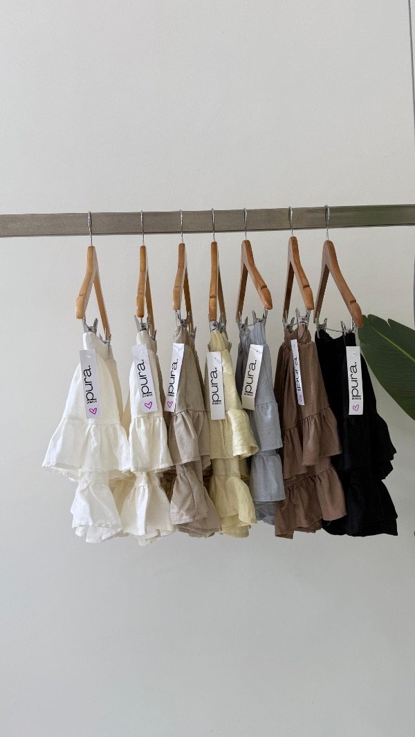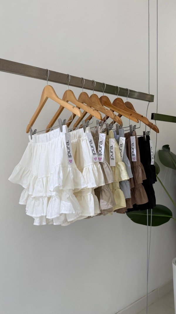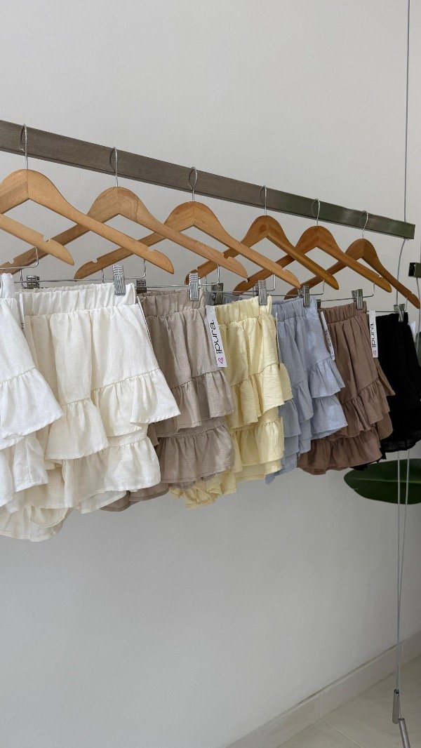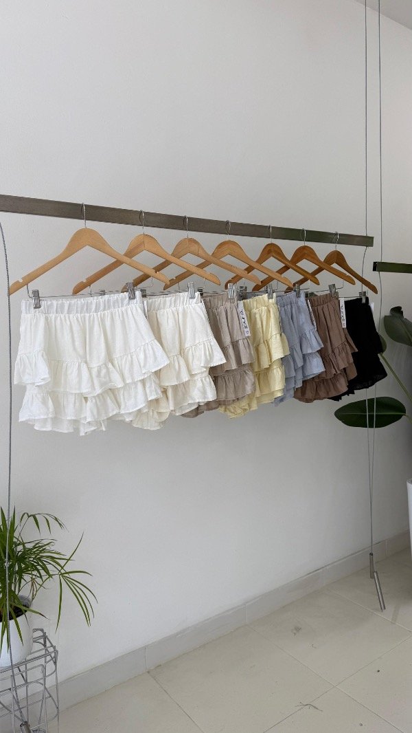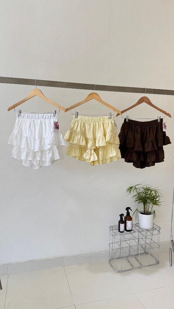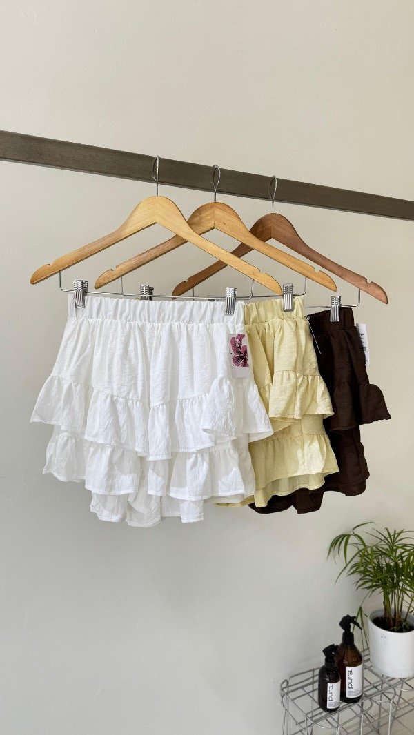 Short pollera de voile rayón con volados y cintura elastizada. Talle único, abarca de un S al L