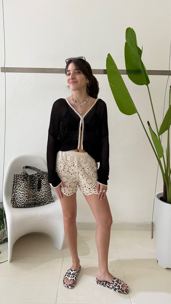 Short tejido de tiro alto con cintura elástica y forreria al tono.