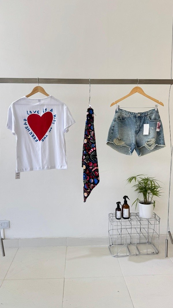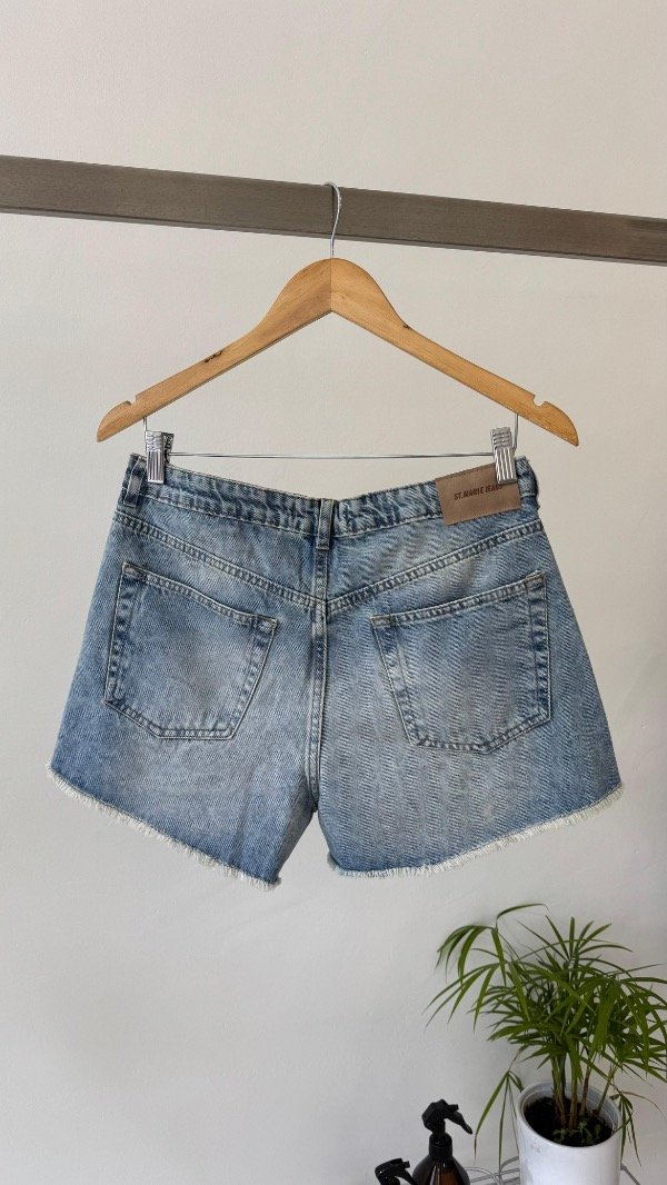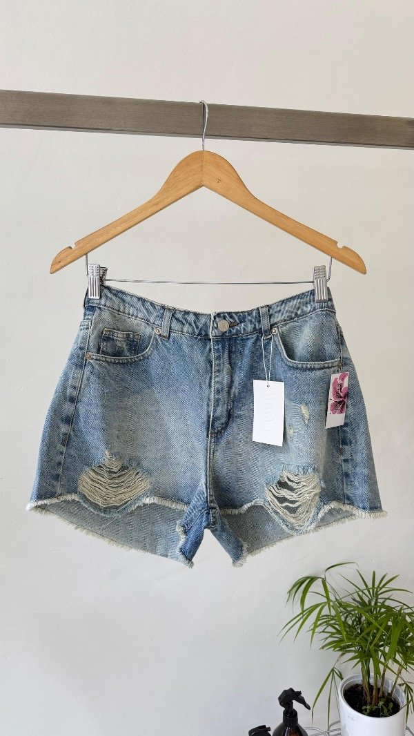 Short rígido tiro medio con detalle de roturas y color óxido.