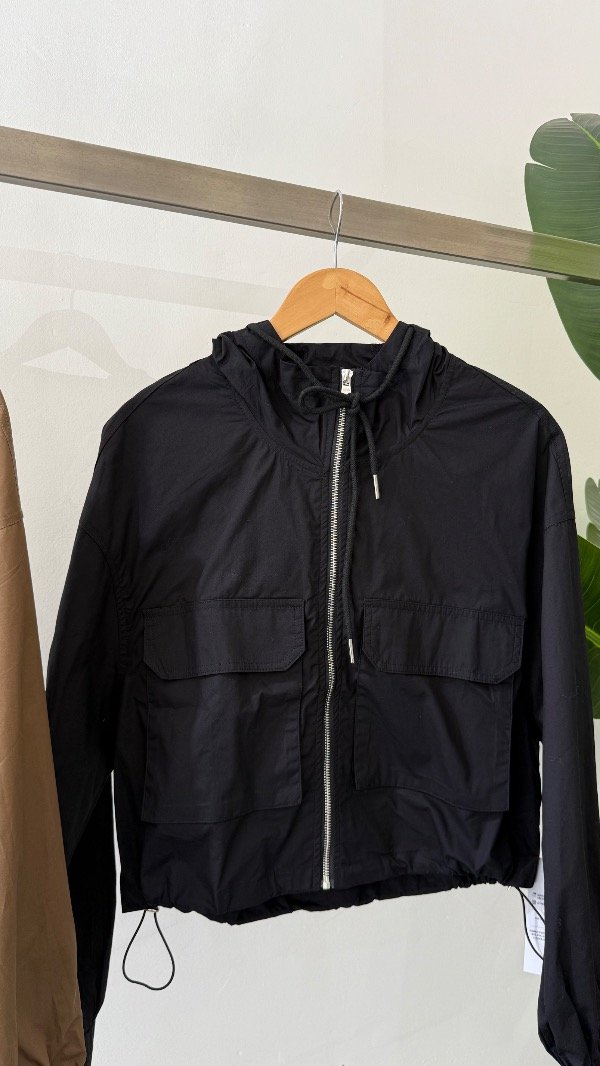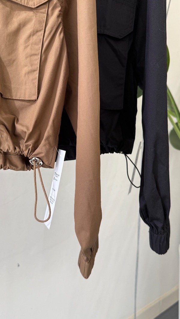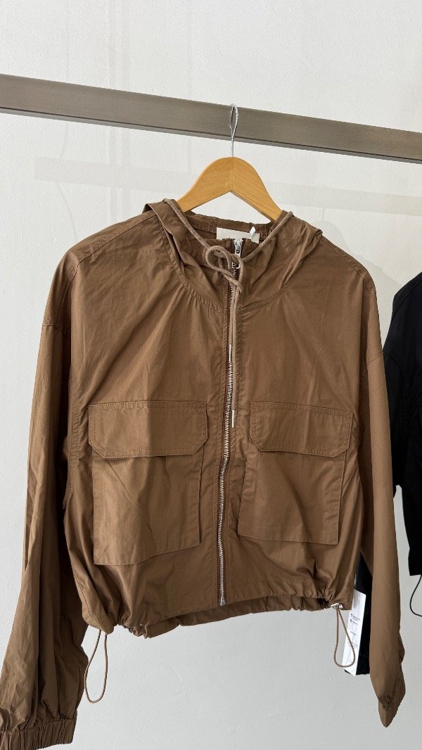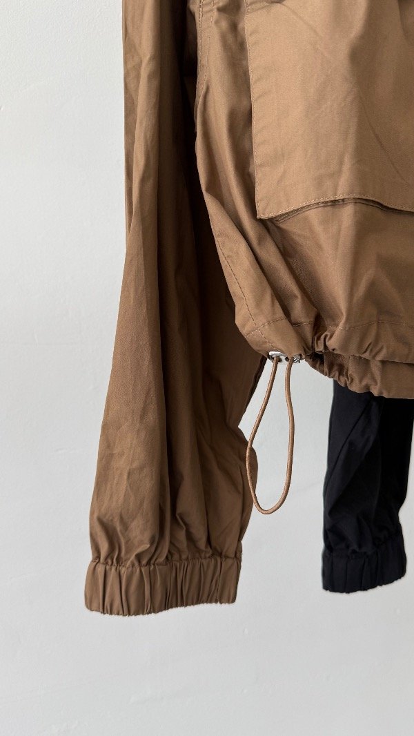 Piloto con capucha y corte a la cintura con tiras de ajuste