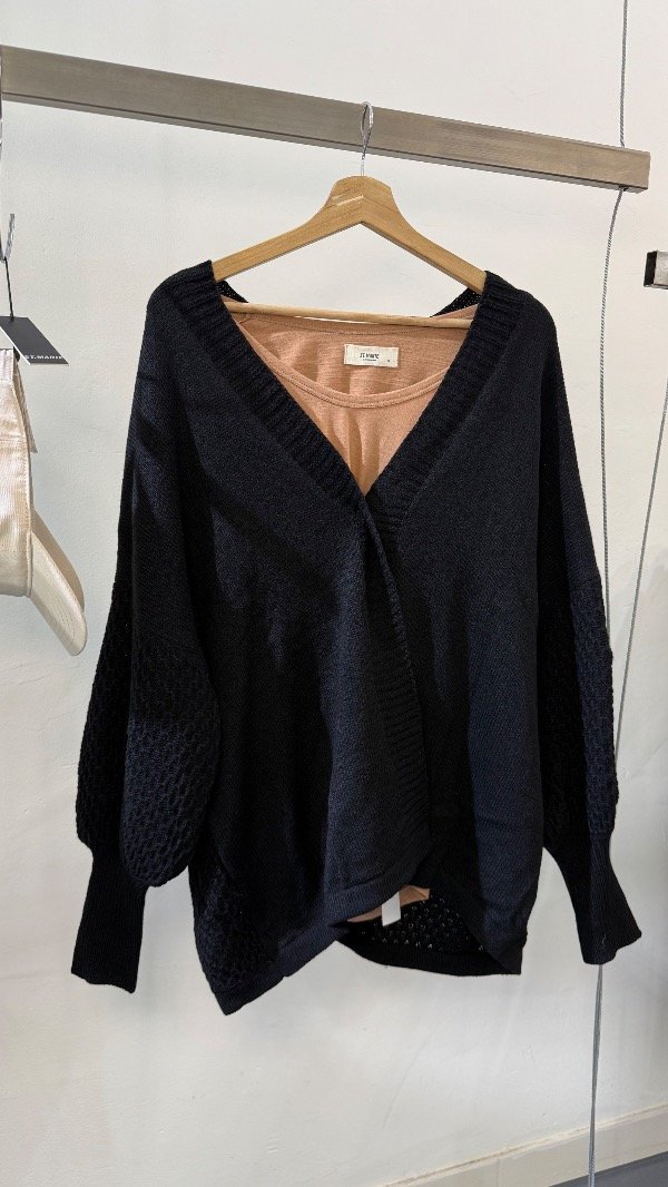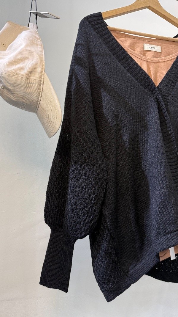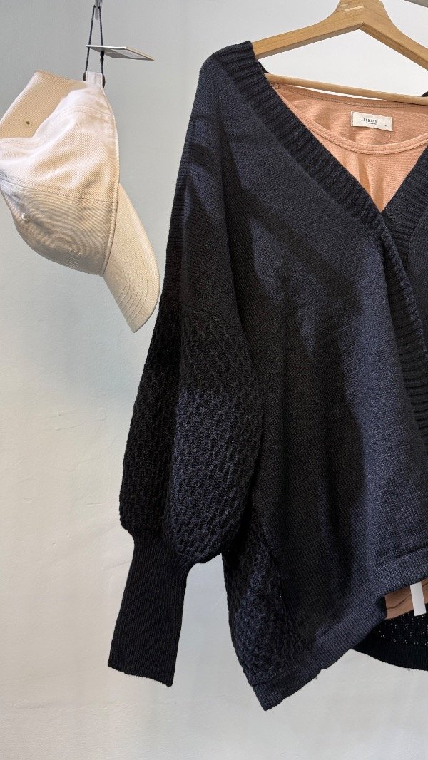 Saco de lana con mangas ballon tejido Waffle. Talle único, abarca de un S al XL