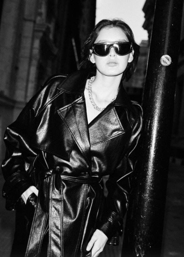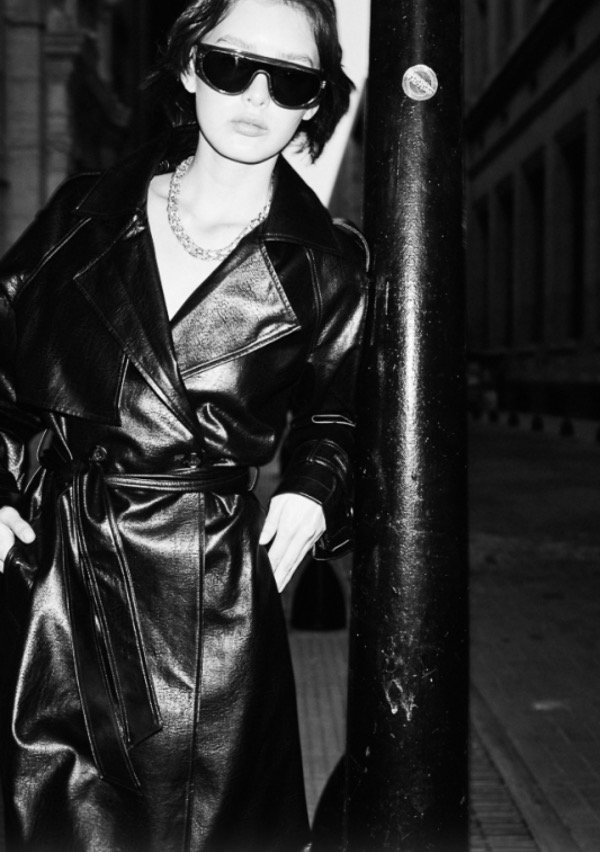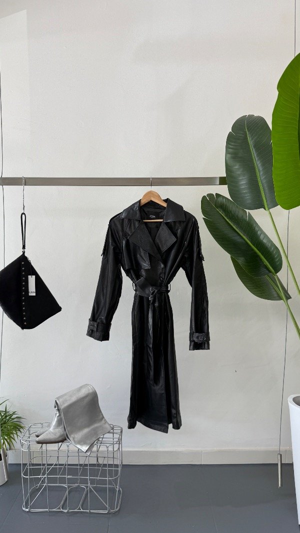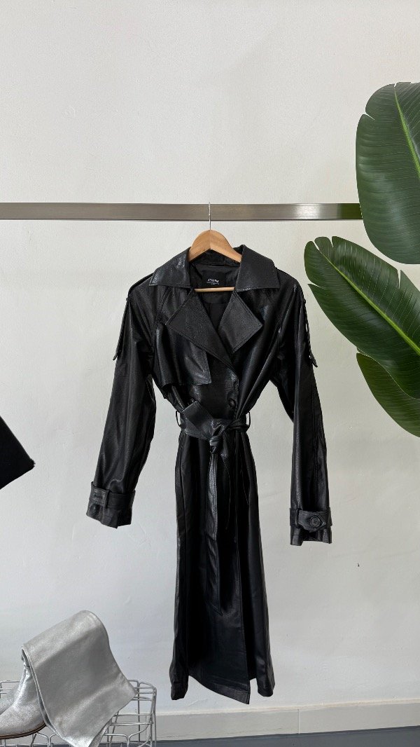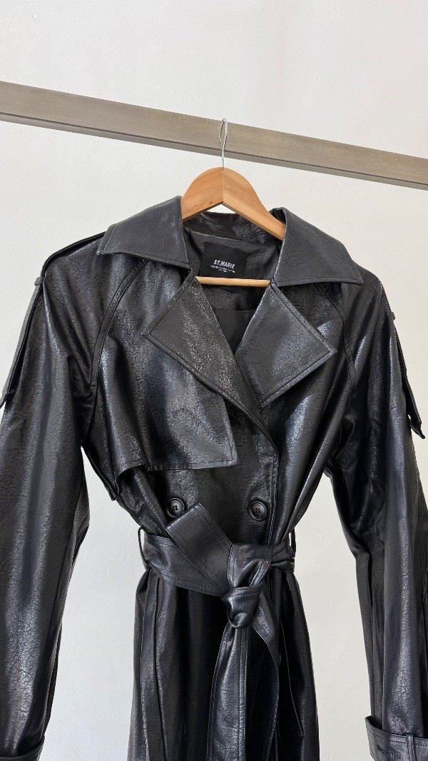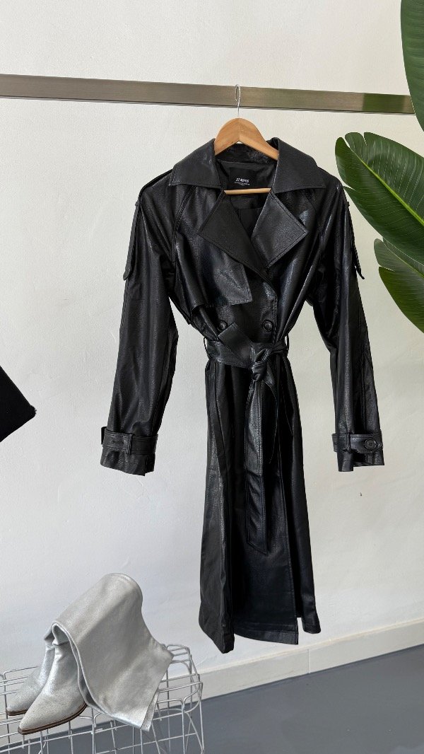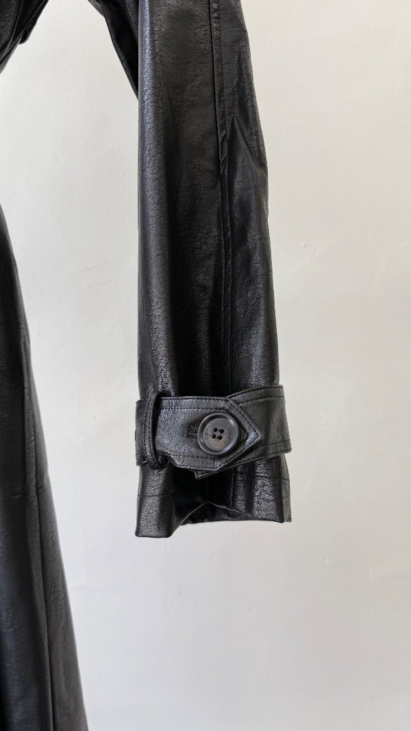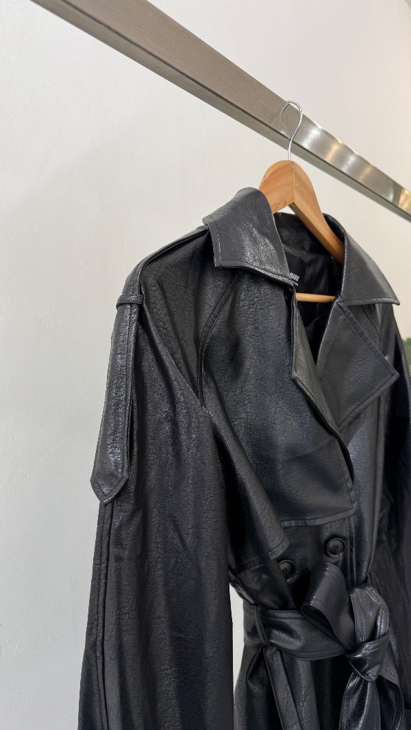 Trench confeccionado en simil cuero, de calce amplio.