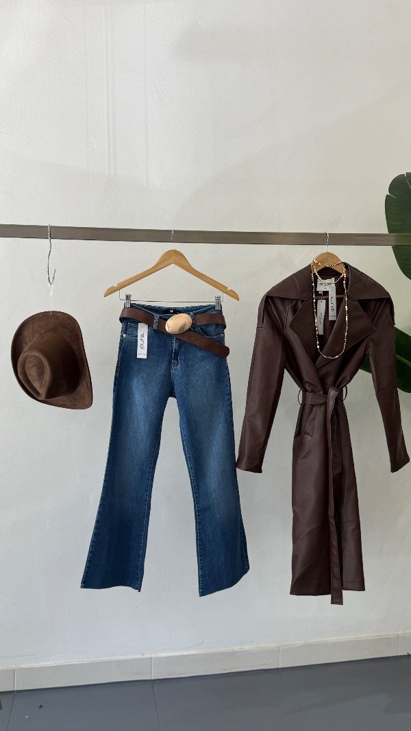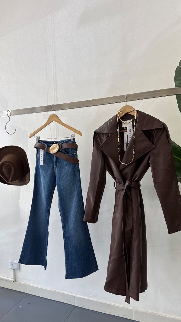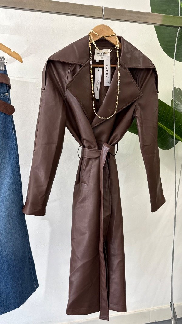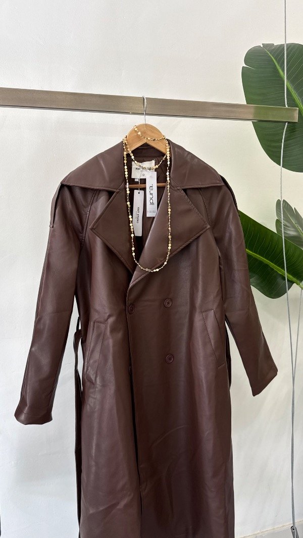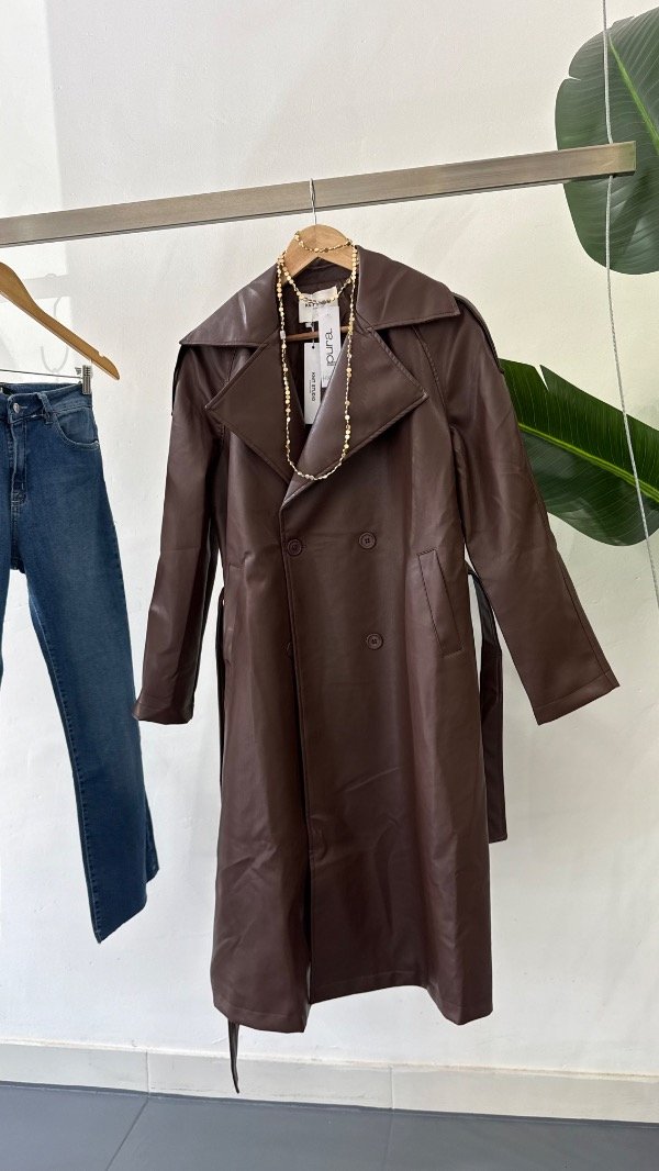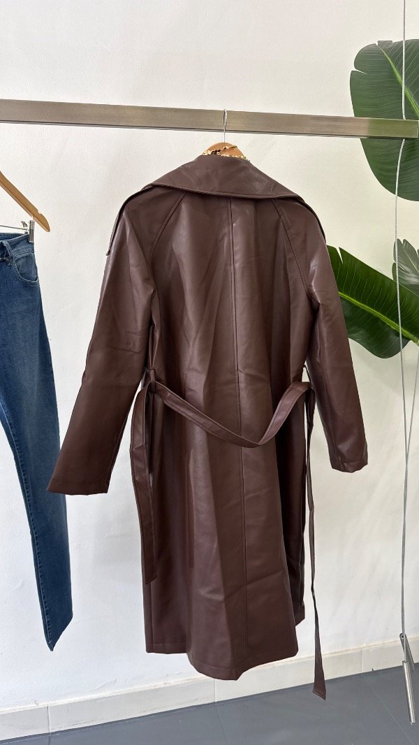 Trench de ecocuero forrado con botones y cinturón