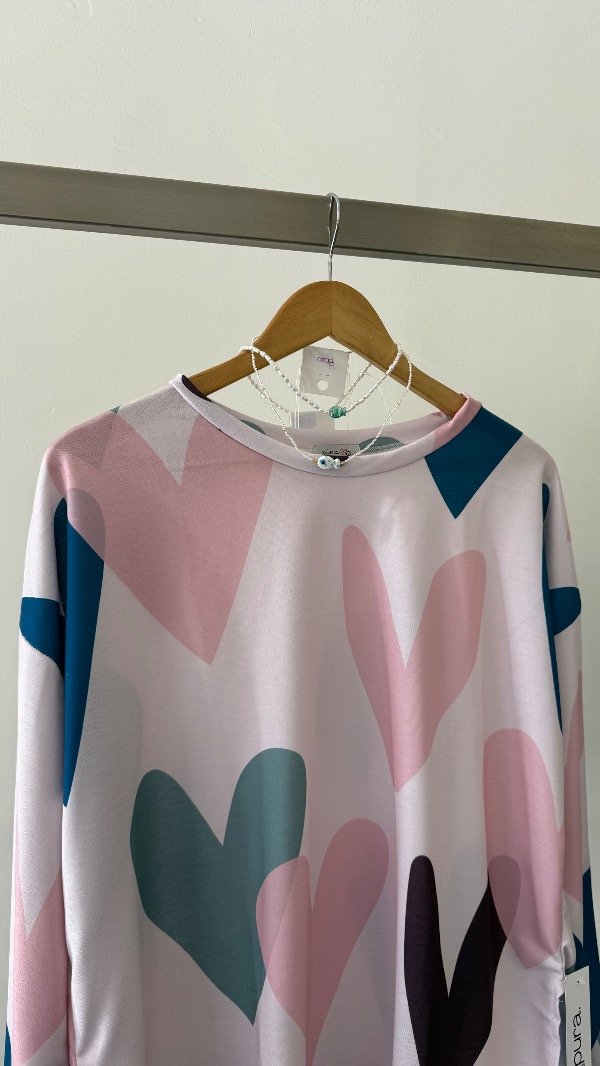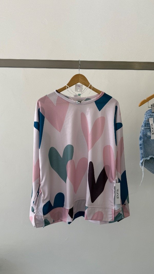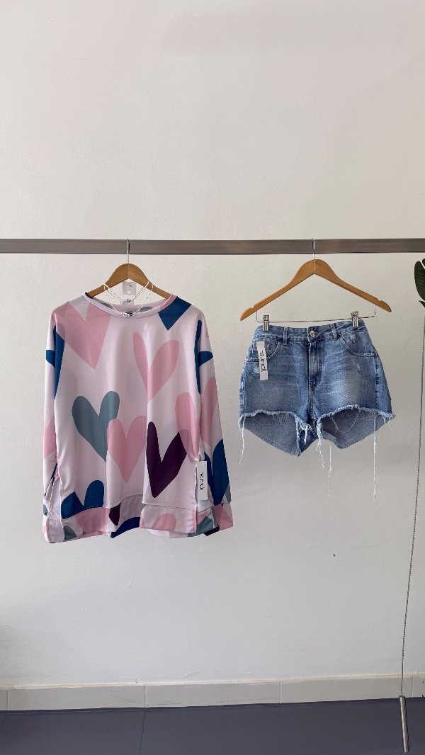Buzo de algodón rústico estampado con detalle de tajos laterales. Talle único, abarca de un S al XL