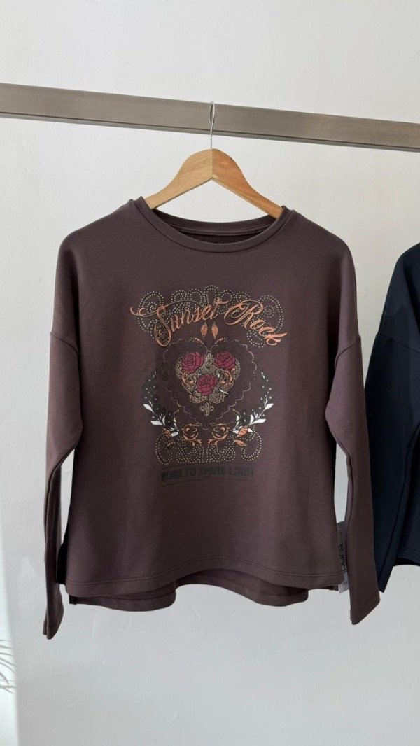Buzo de rústico con lycra, con cuello redondo y corte clásico. Lleva estampa central en el delantero. En la espalda superior lleva badana marcaria.