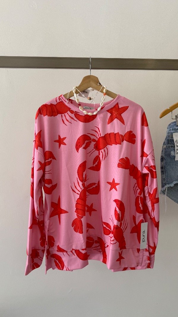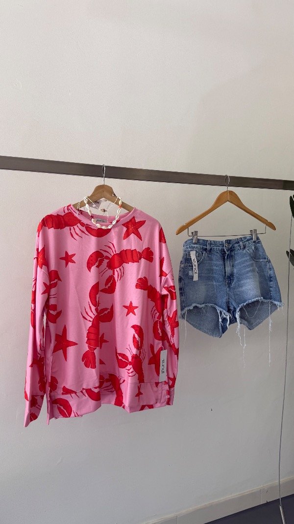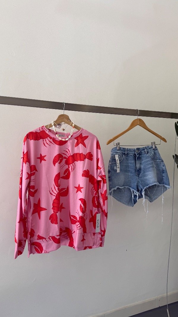 Buzo de algodón rústico estampado con detalle de tajos laterales. Talle único, abarca de un S al XL