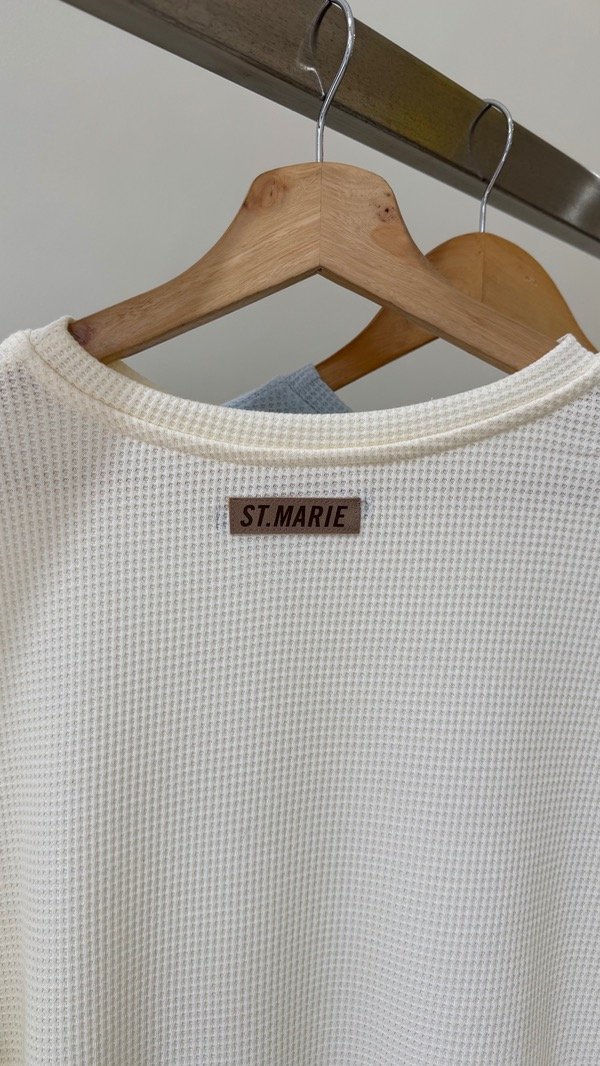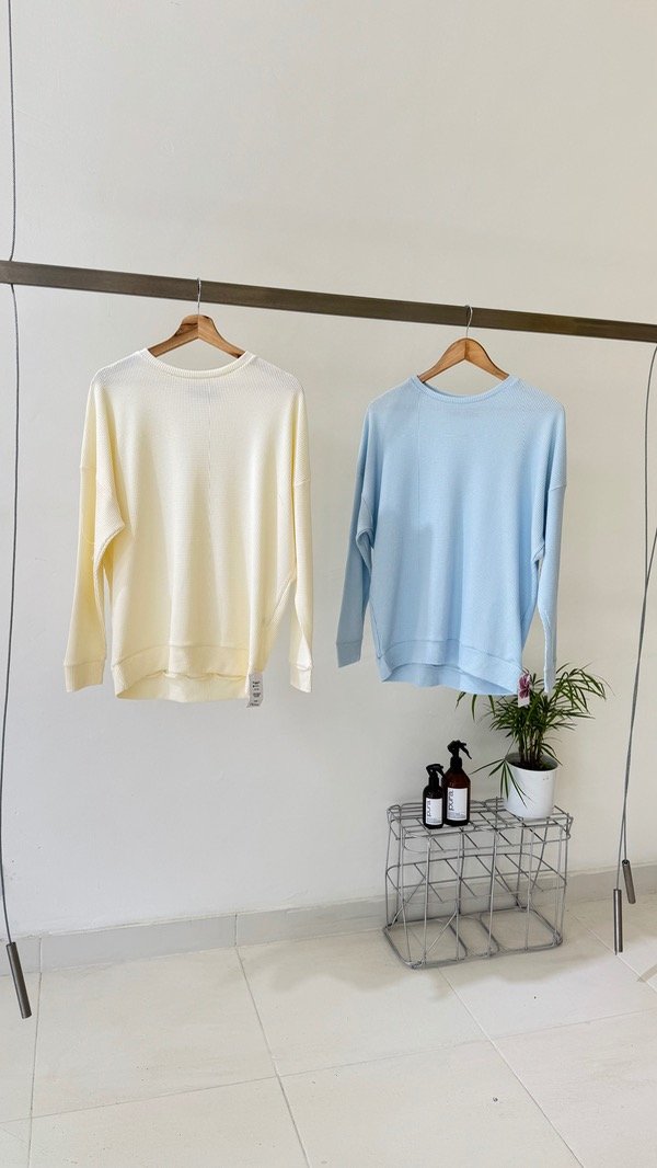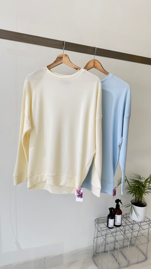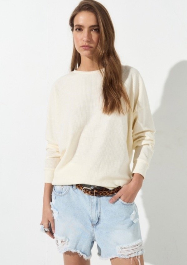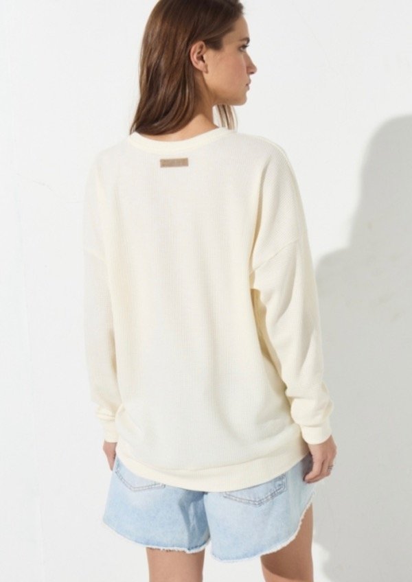 Buzo de waffle, corte oversiza con detalle de badana personalizada