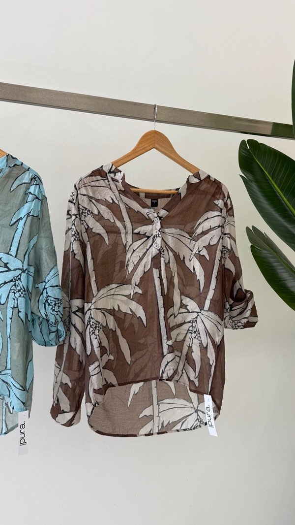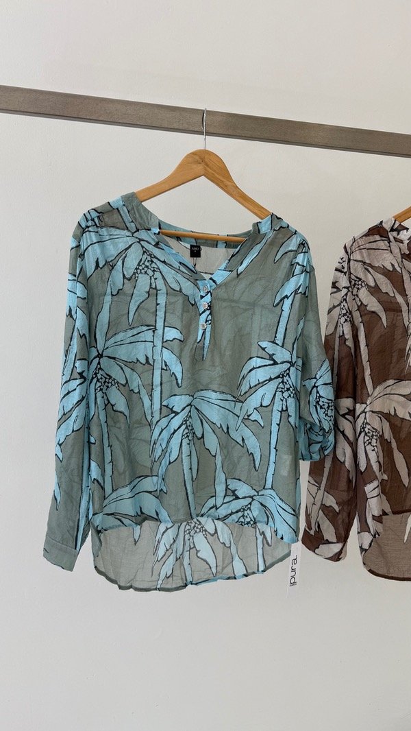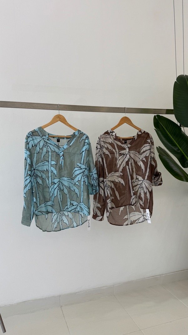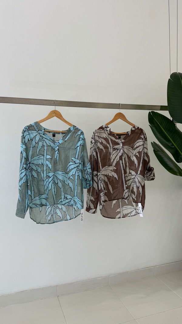 Camisa de lino sedificado corte mao. Talle único, abarca de un S al XL