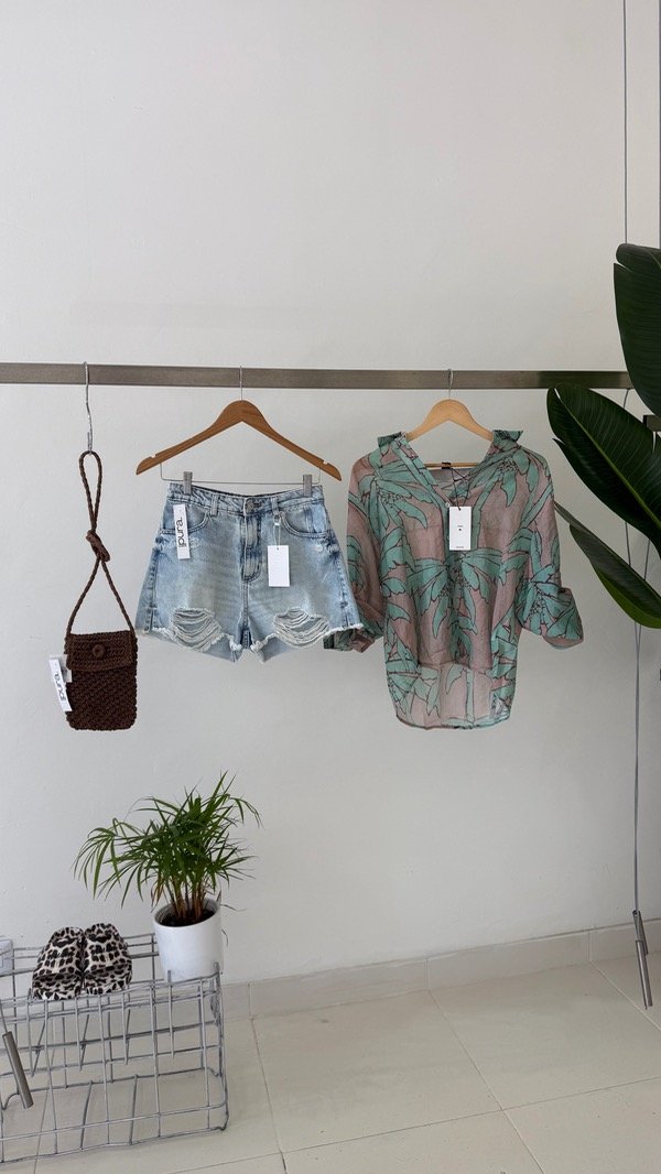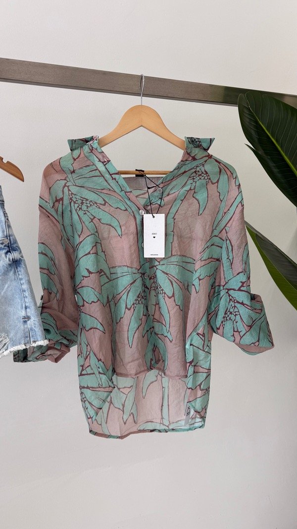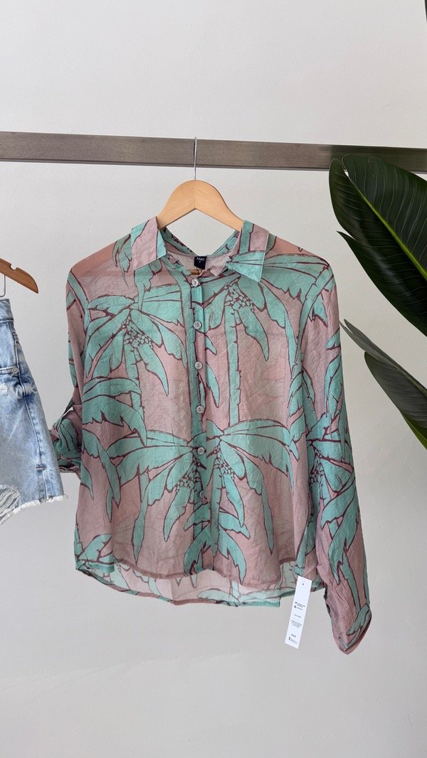 Camisa de lino sedificado estampado. Talle único, abarca de un S al L
