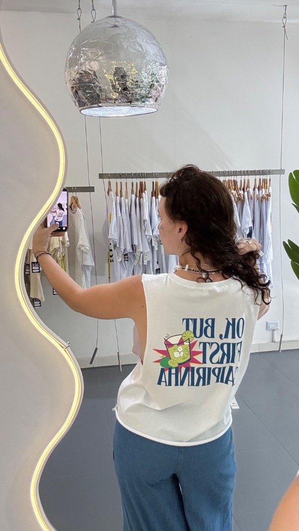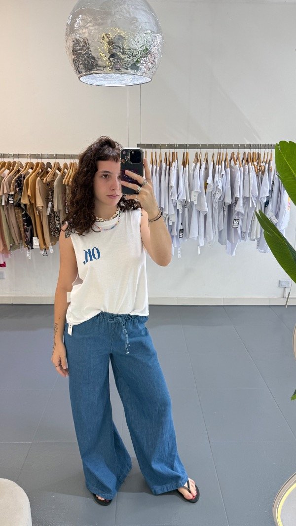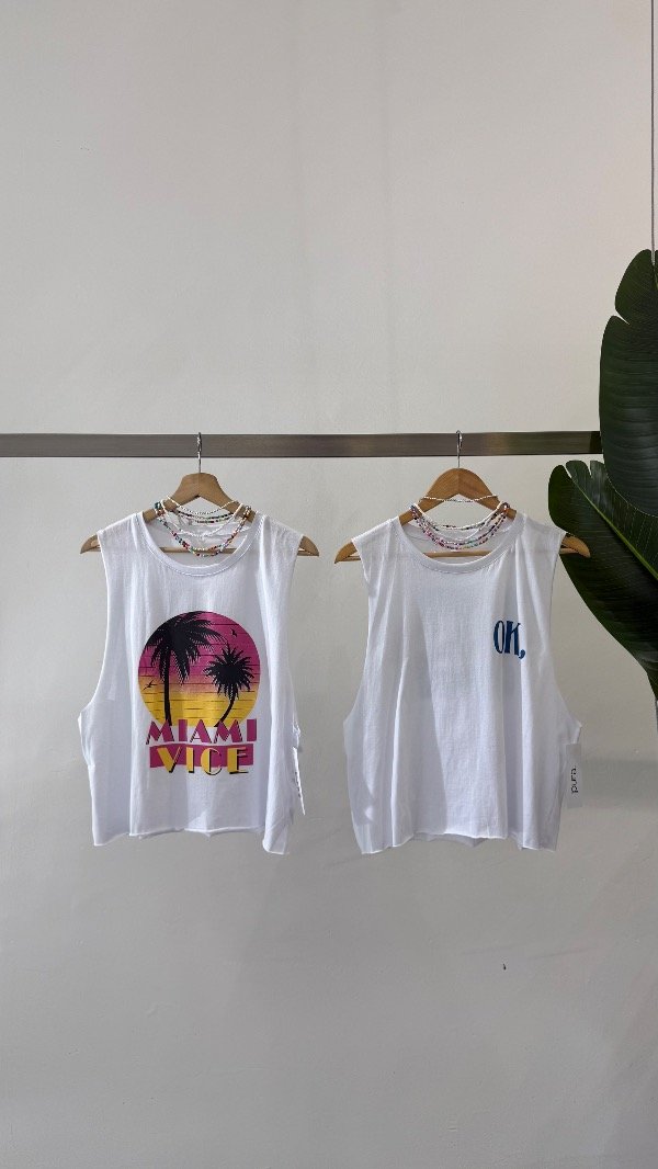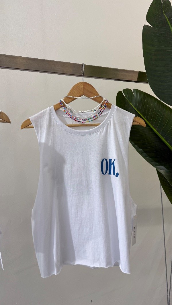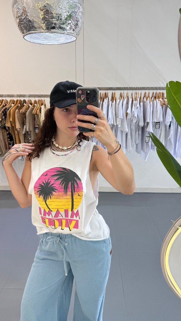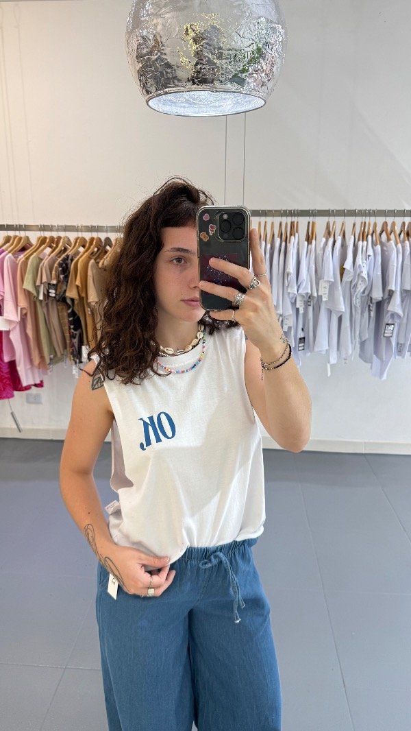 Musculosa de algodón estilo sudadera con estampa. Talle único, abarca de un S al L