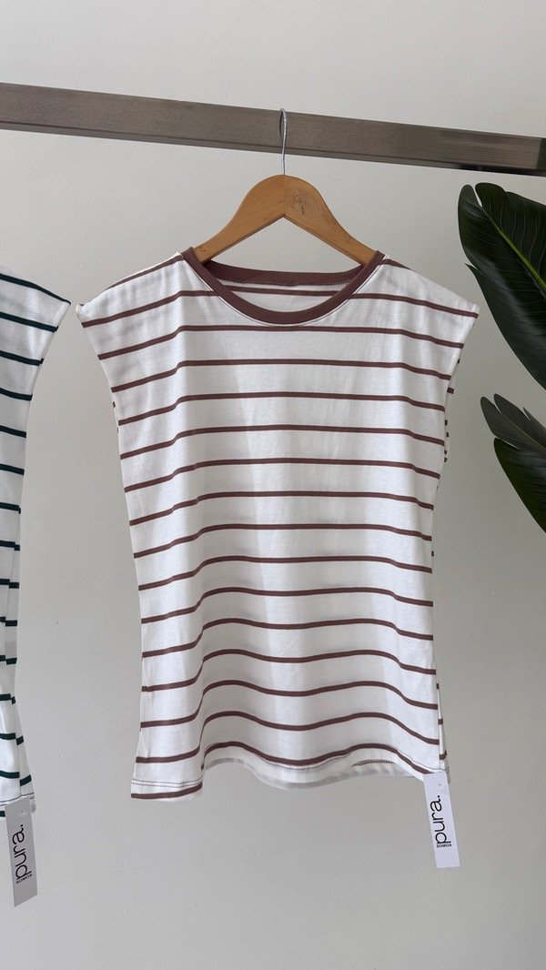 Musculosa de algodón rayado. Talle único, abarca de un S al L