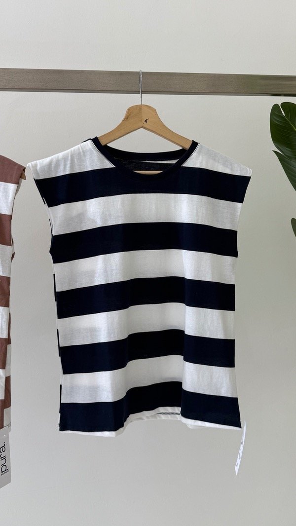Musculosa de algodón rayado. Talle único, abarca de un S al L