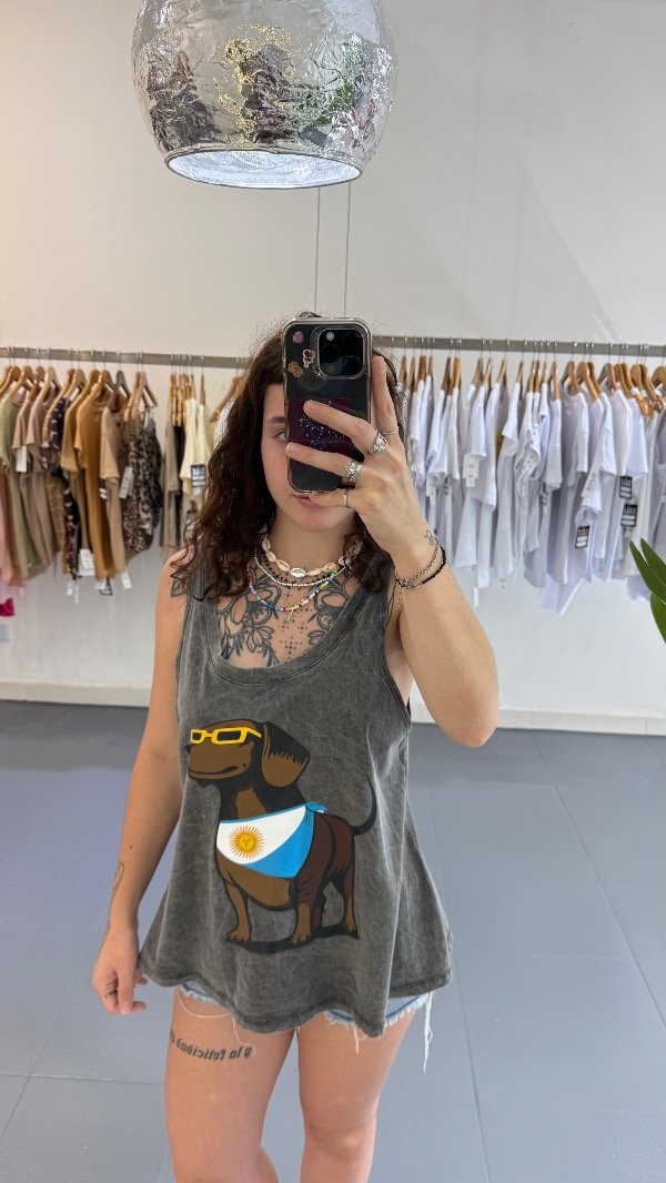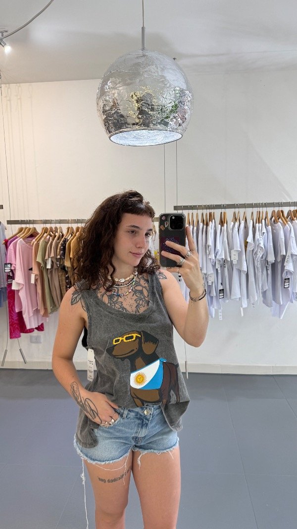 Musculosa de algodón over con estampa. Talle único, abarca de un M al XL