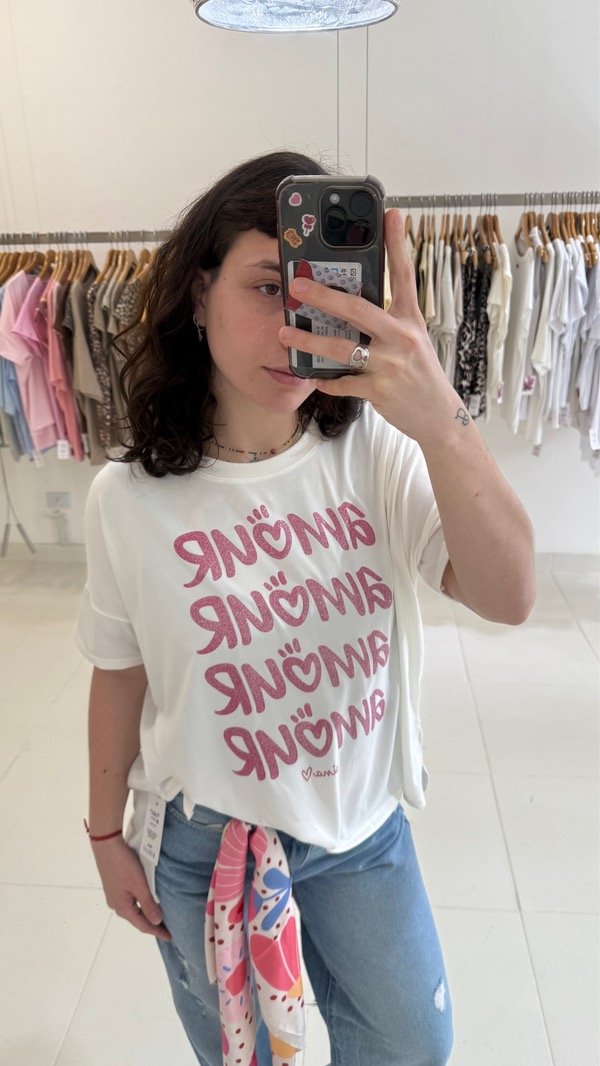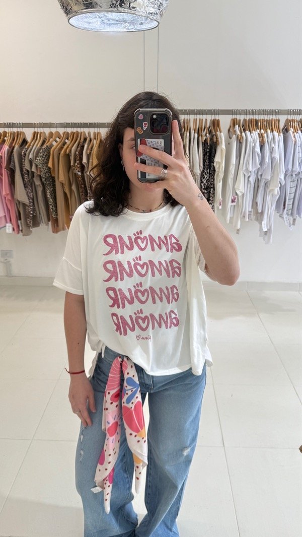 Remera de algodón estampada. Talle único, abarca de un S al L