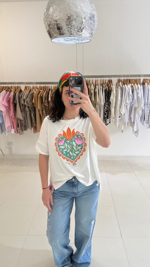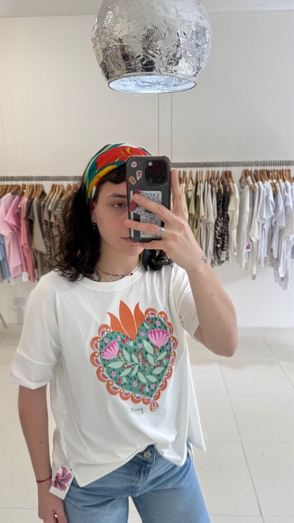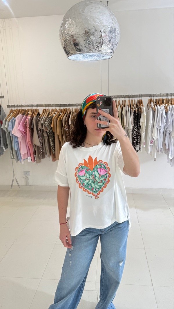 Remera de algodón estampada. Talle único, abarca de un S al L
