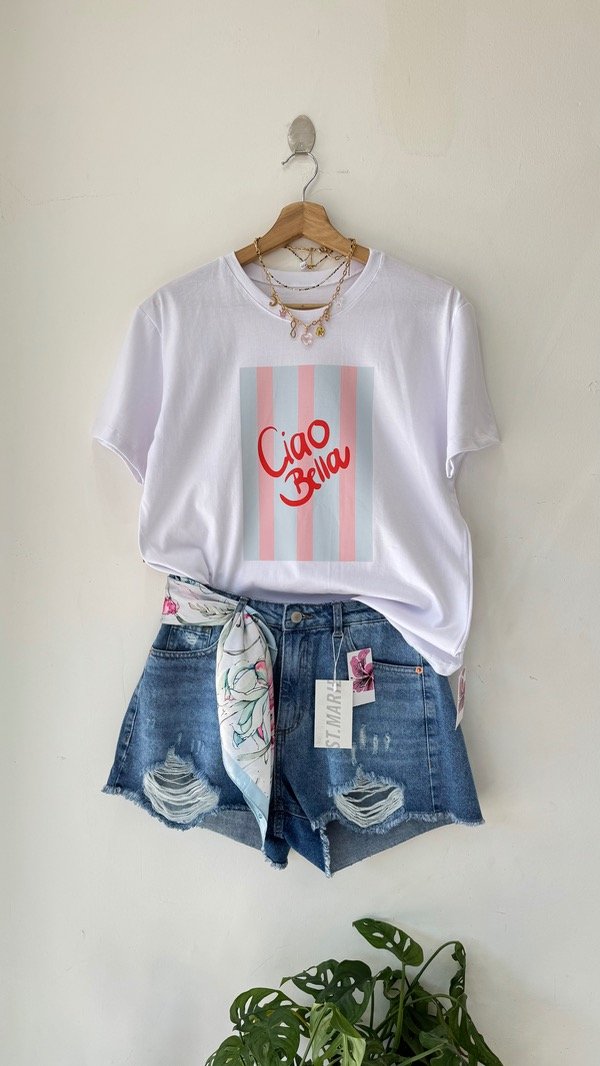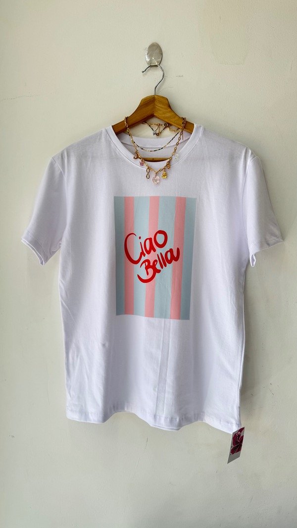 Remera de algodon estampada, talle unico. Abarca hasta un L
