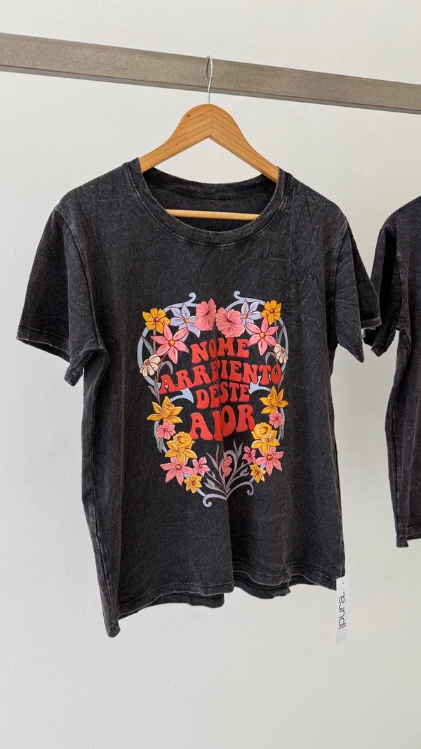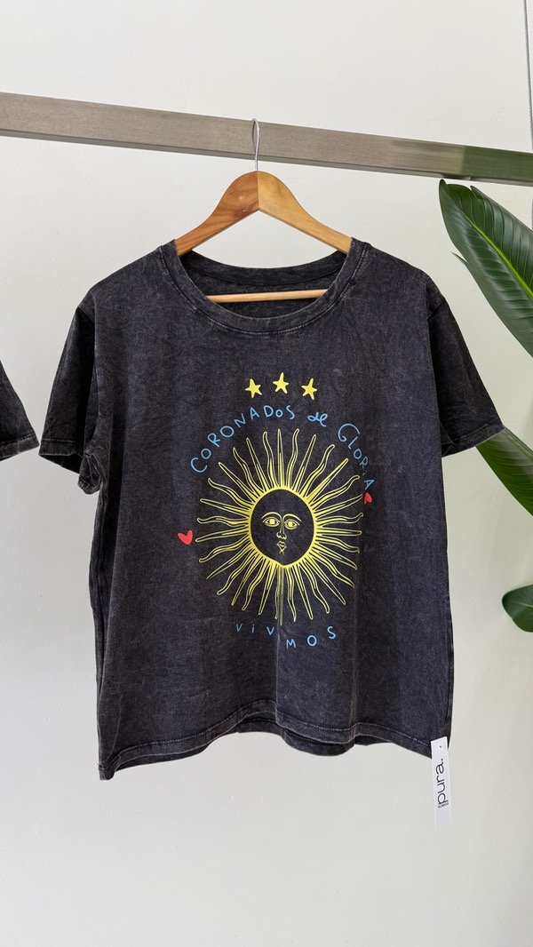 Remera de algodón batik con estampa delantera. Talle único, abarca de un S al XL