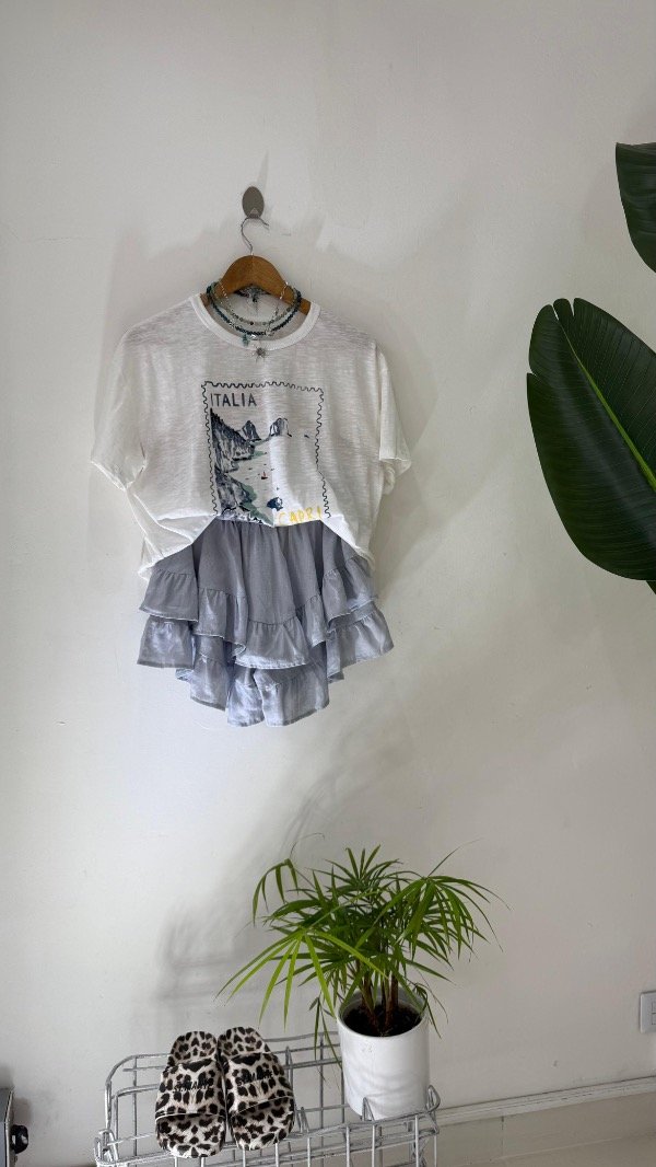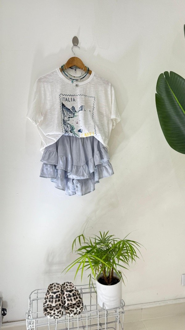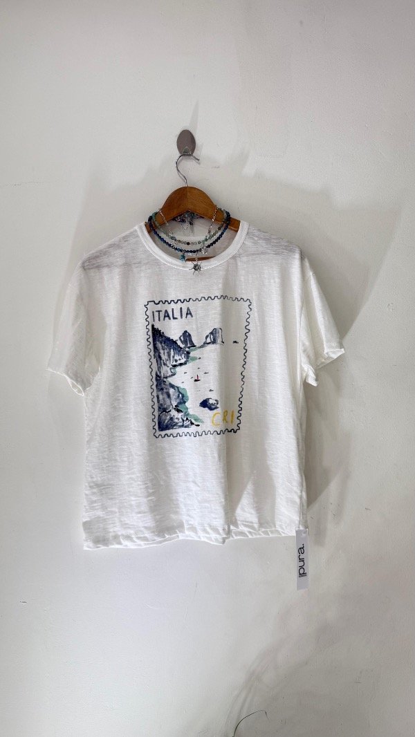 Remera basica de algodon con estampa delantera. Talle único, abarca de un S al L
