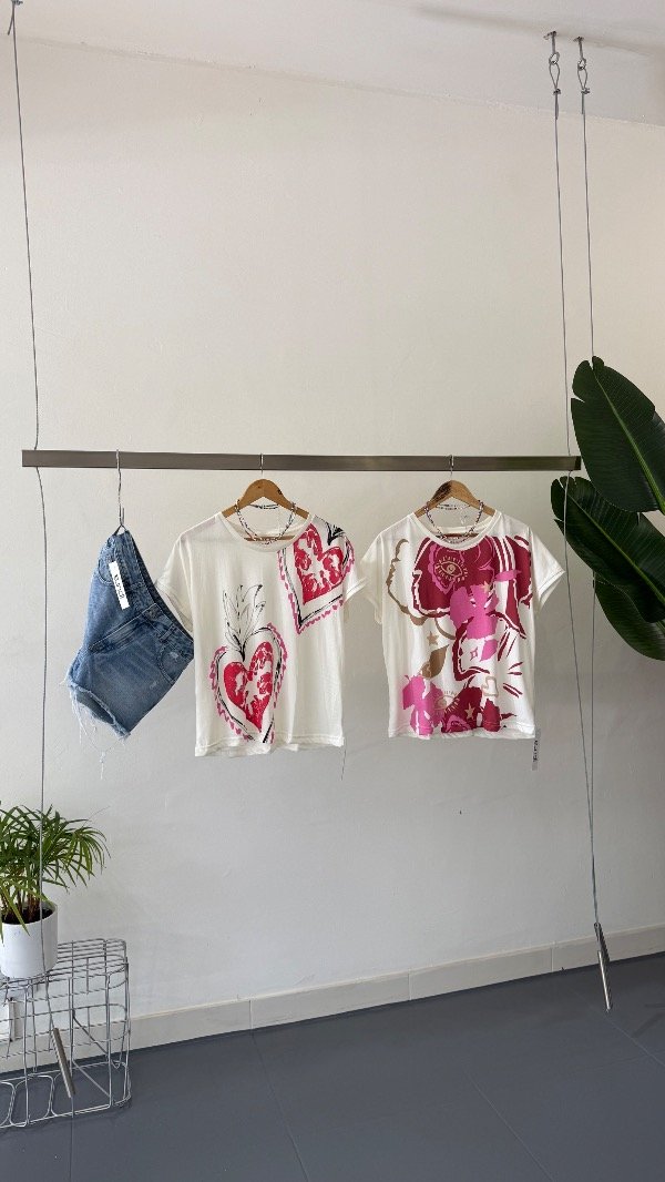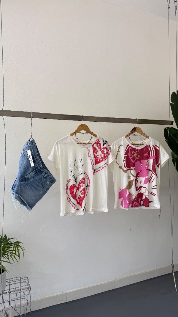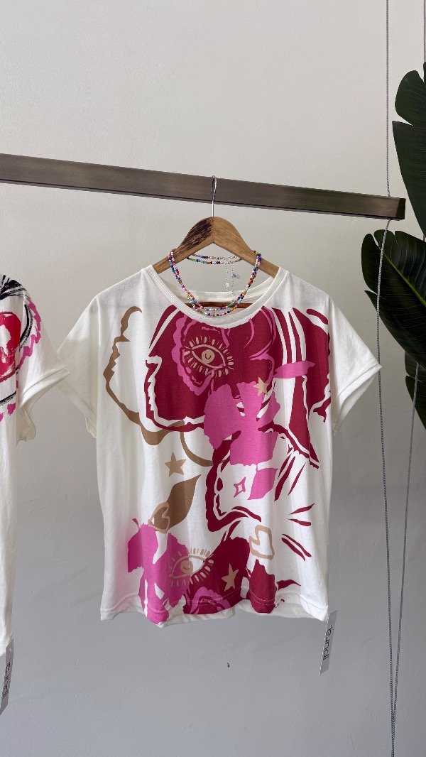 Remera de algodón estampada. Talle único, abarca de un S al L