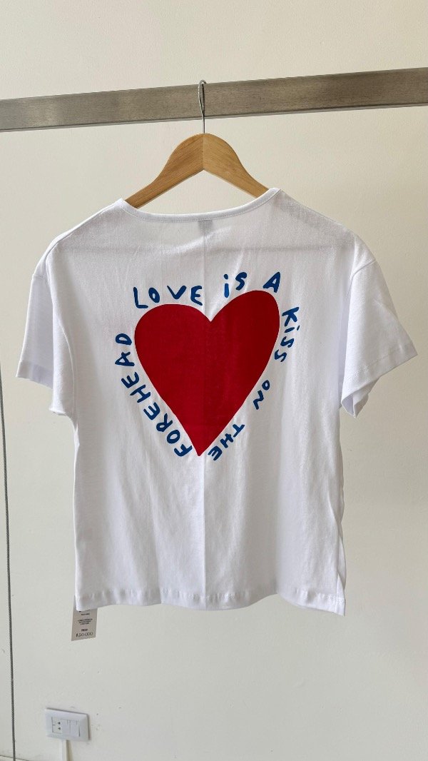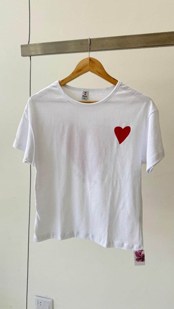 Remera basica de algodón con detalle de cuello de color y estampa delantera y trasera.