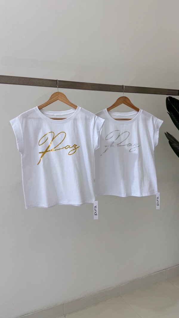 Remera de algodón básica con estampa cromada. Talle único, abarca un S al L