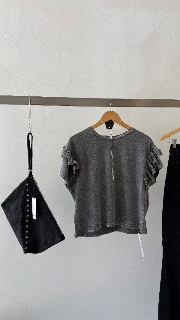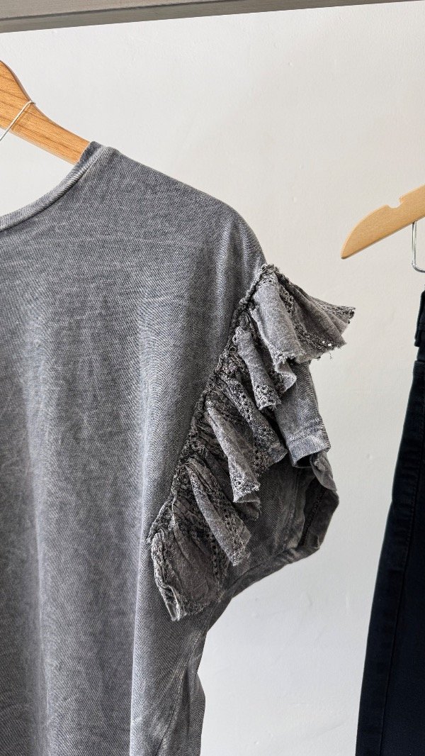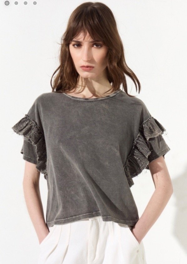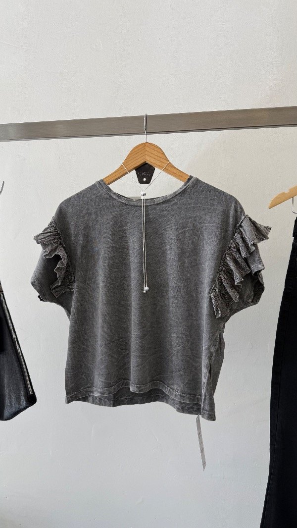 Remera de jersey con manga de broderie, escote redondo clásico.