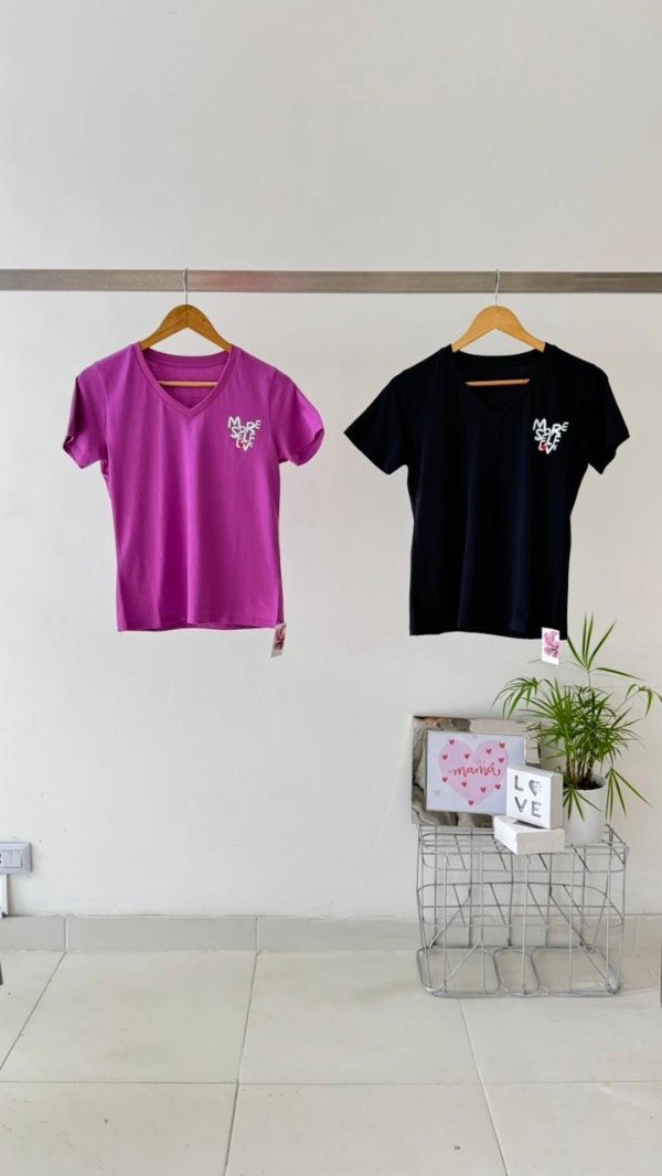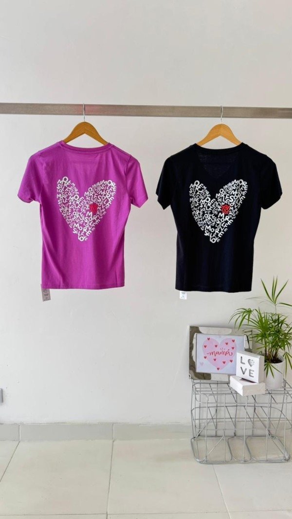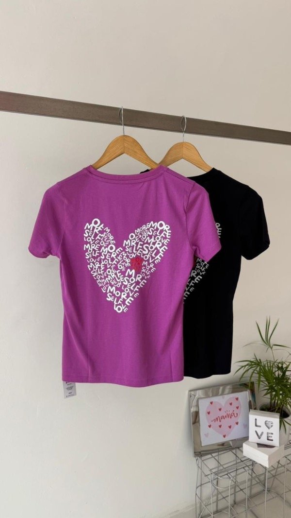 Remera de algodón con cuello en V, con estampa delantera y trasera