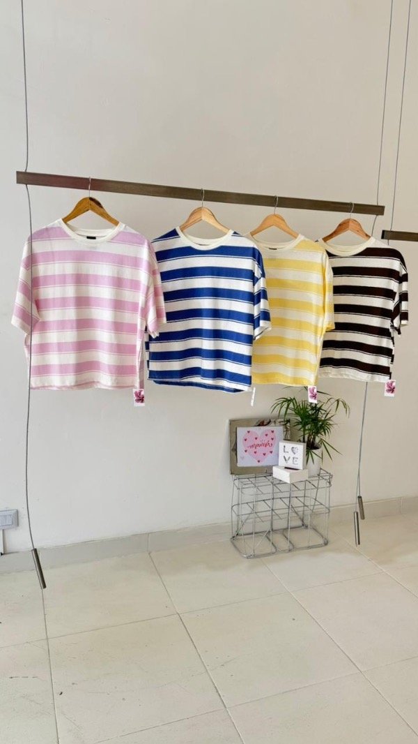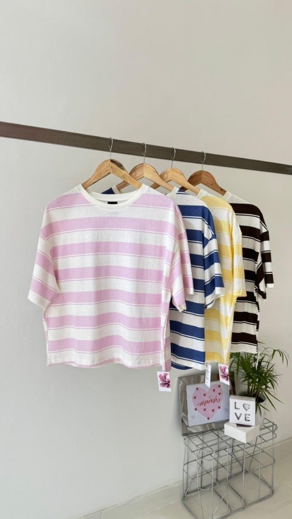 Remera basica de algodón con estampa rayada. Talle único, abarca de un S al L