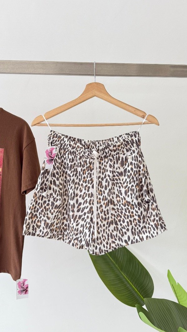 Short de flame estampado full print, con bolsillos y elástico en cintura, el mismo se complementa con una piola que tiene terminales de metal con la identificación de la marca. En el interior de los costados de la cintura lleva cinta bebe que permite colgar la prenda.