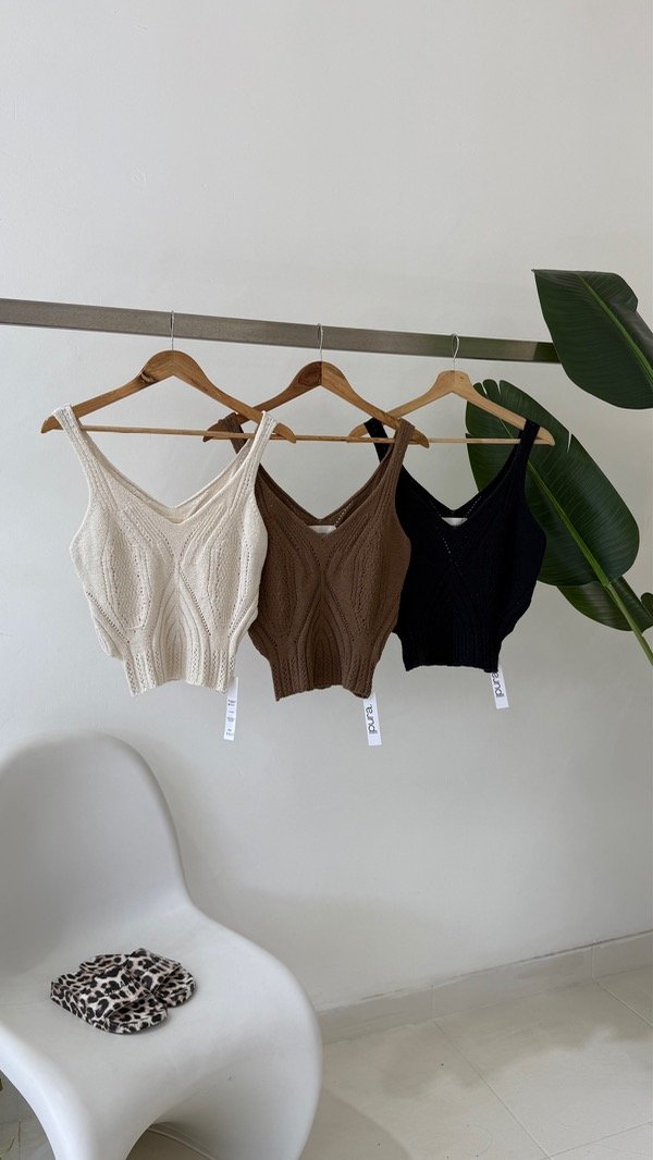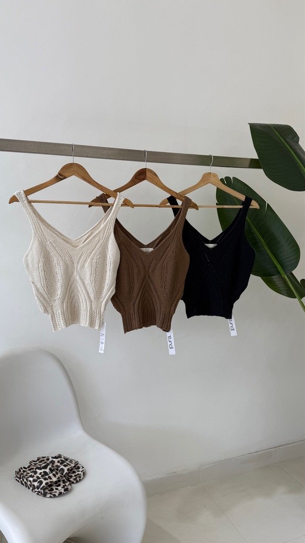 Top tejido en hilado de algodón con lycra, tiene calce holgado,
