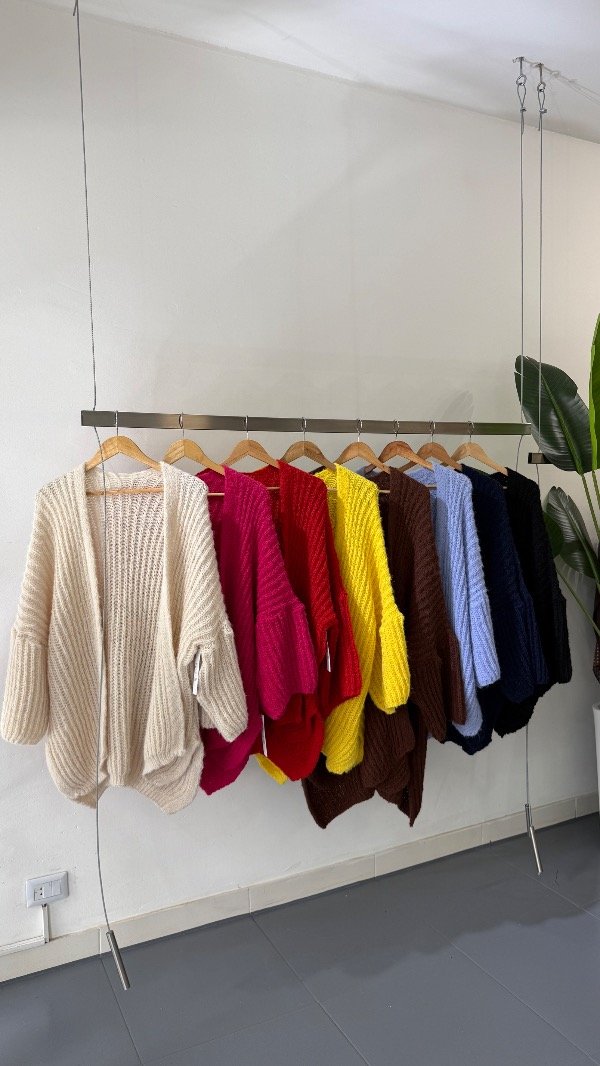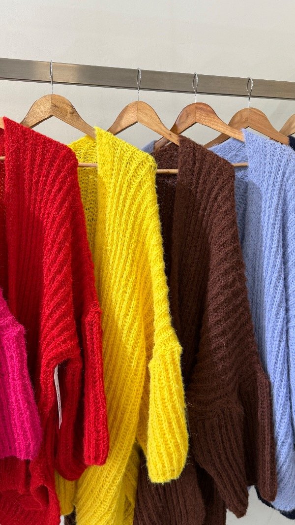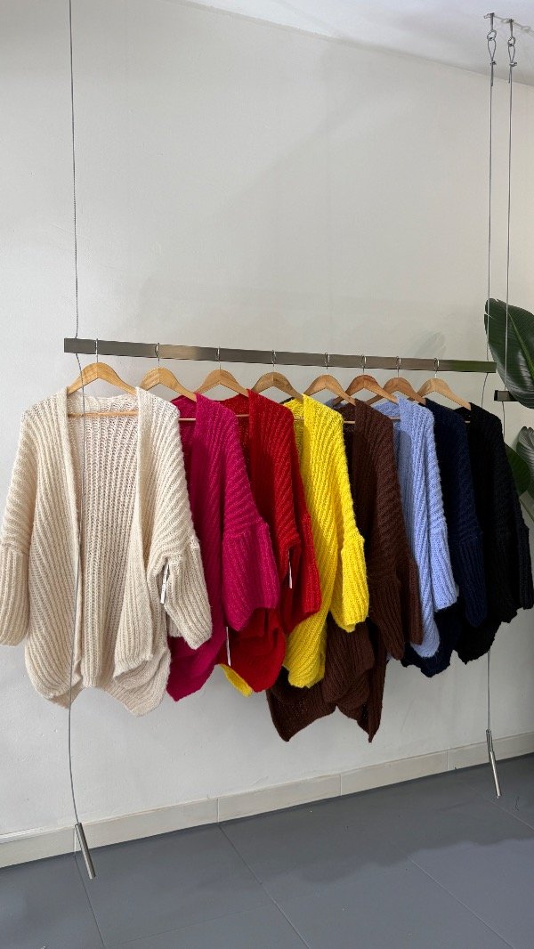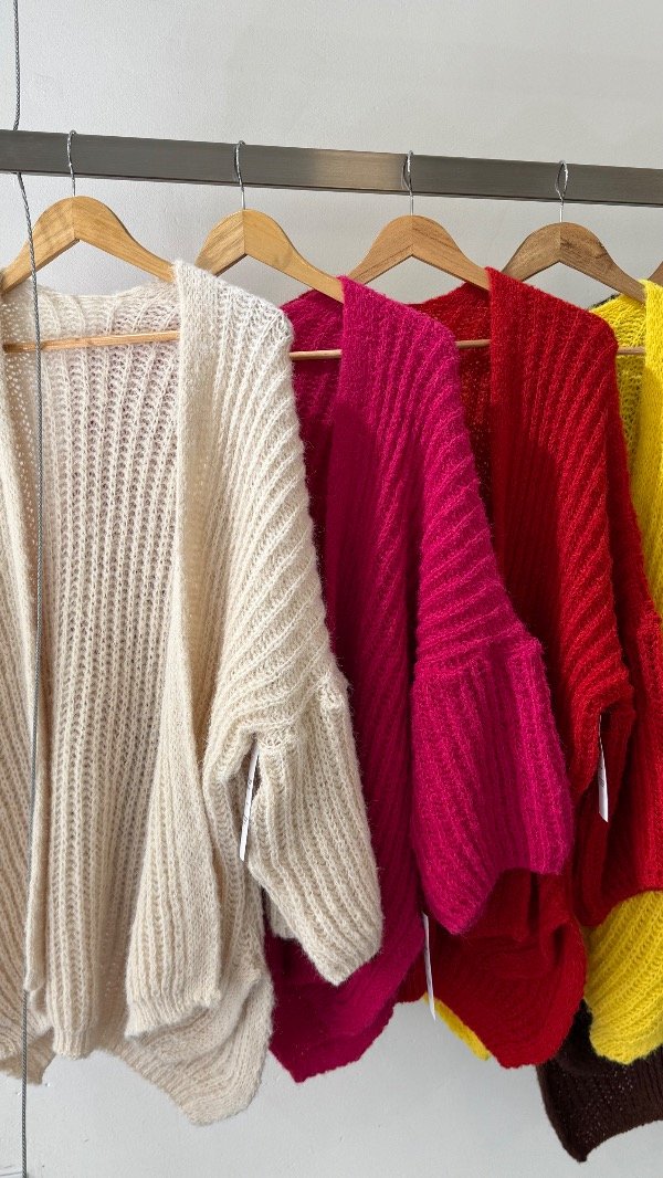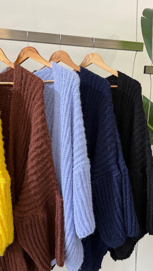 Saco de mohair largo a la rodilla con manga súper caída. Talle único, abarca hasta un XXL