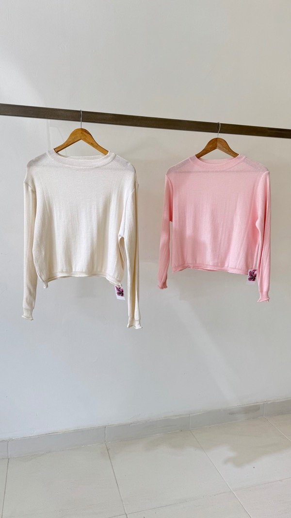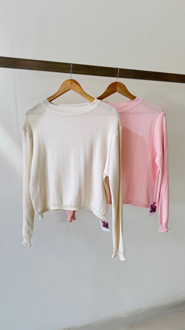 Sweater de hilo de algodon cuello redondo, talle único. Abarca hasta un L