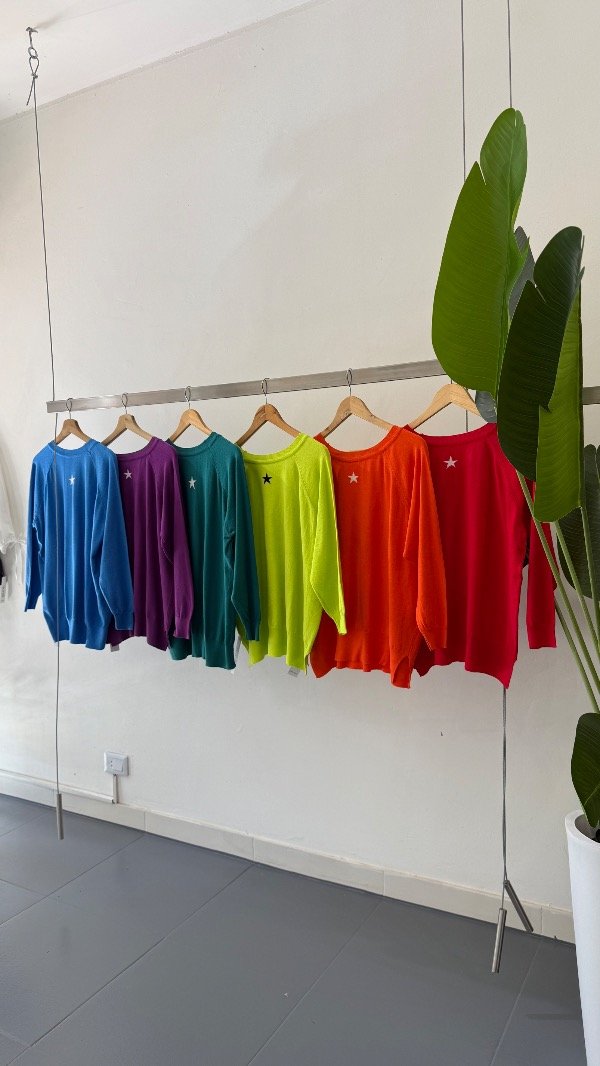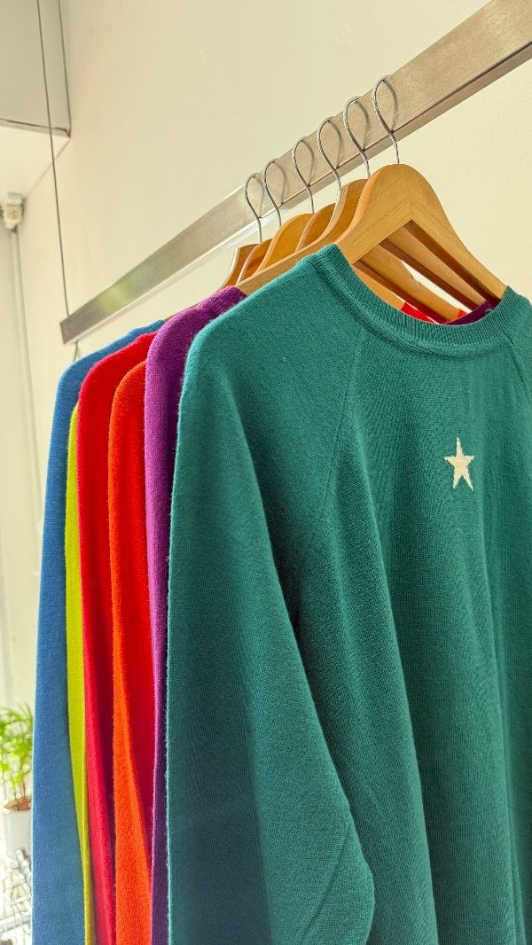 Sweater básico de Bremer liviano de medio tiempo talle único . Con detalle de estrella en la espalda