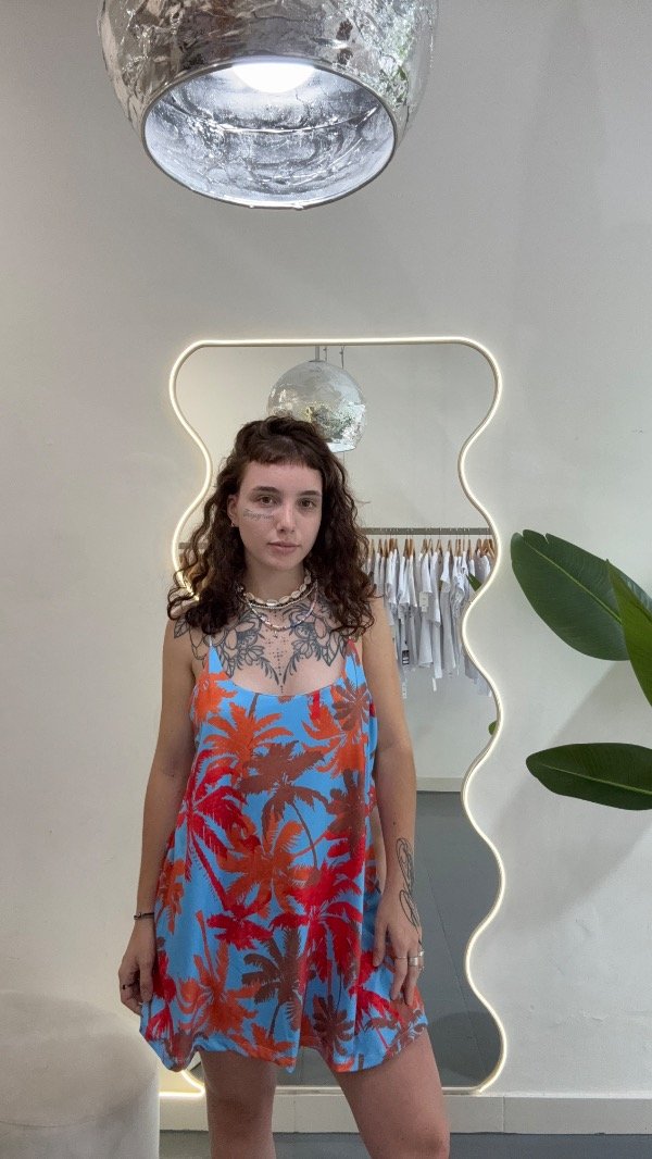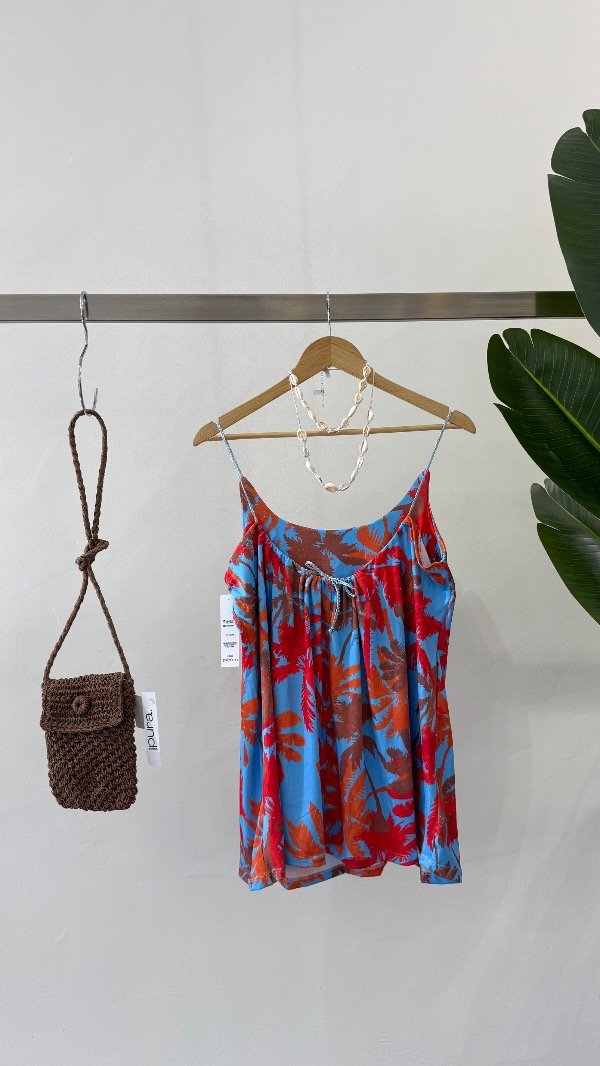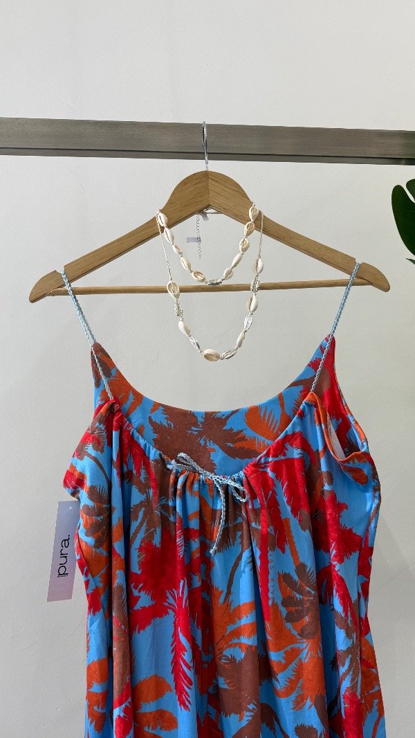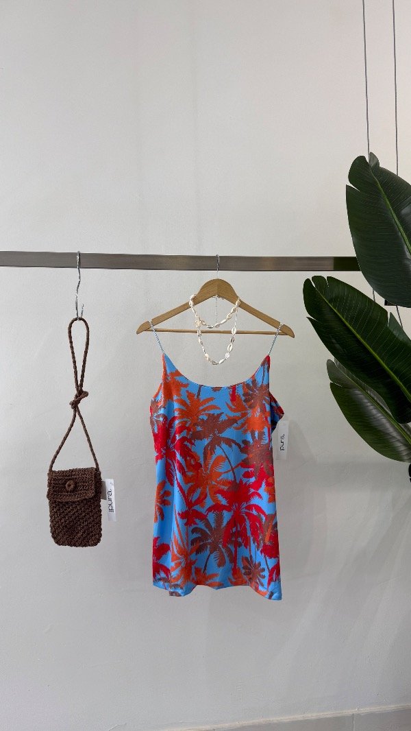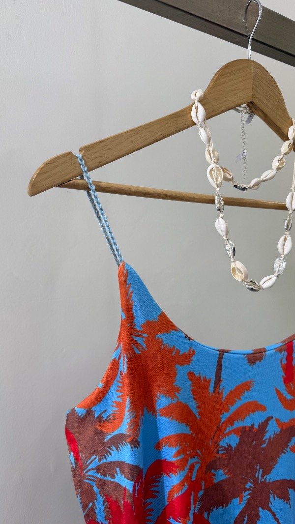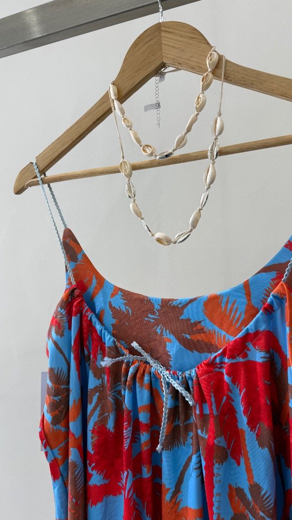 Musculosa de doble modal con bretel regulable, podes usarla como vestido playero cortito. Bretel con brillitos. Talle único, abarca de un S al L