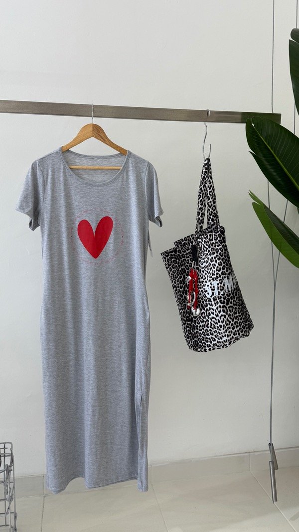 Vestido de algodón largo con tajo lateral y estampa delantera. Talle único, abarca de un S al L
